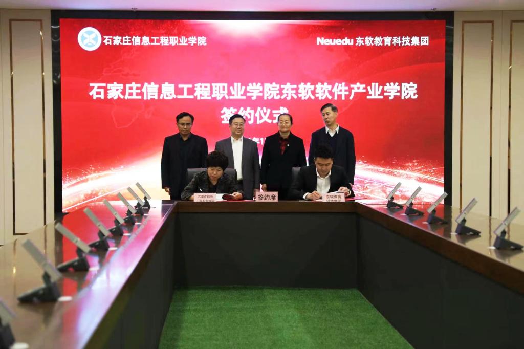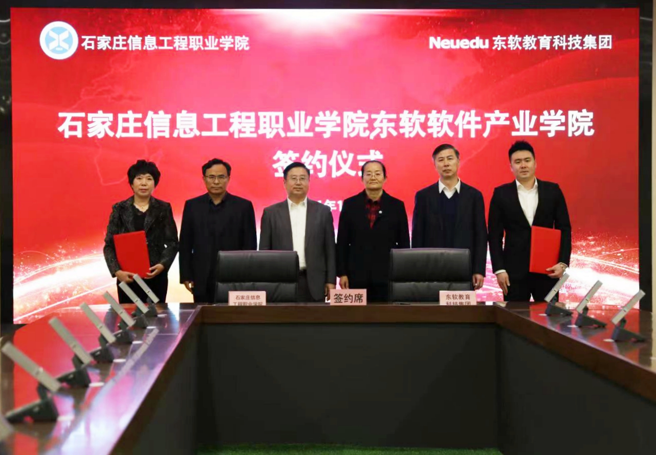 石家庄市教育局局长赵立芬;beat365中文官方网站院长许征程,副院长黄淑敏;东软教育科技集团高级副总裁李印杲,副总裁、河北东软软件有限公司总经理刘向东,华北区总经理赵龙等出席签约仪式。