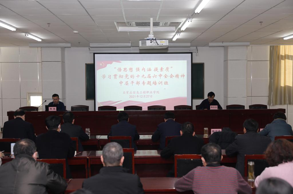 为进一步深入贯彻党的十九届六中全会精神,持续落实全面从严治党,积极推动学院高质量内涵式发展,12月27日-28日,学院举办“悟思想 强内涵 提素质”学习贯彻党的十九届六中全会精神中层干部专题培训班。党委书记马文刚在总结时强调,思路决定出路,学校能否发展关键在人才、在眼界、在思路,加强学习是提升自我的重要途径。此次专题培训旨在拓宽视野,增长知识,提升内涵,在学习中把握新形势,掌握新理论,抓住新机遇,进一步提高政治站位、更新思想观念、转变思维方式,为下一步更好地开展工作积蓄能量。院长许征程参加,党委副书记陈宗良主持。