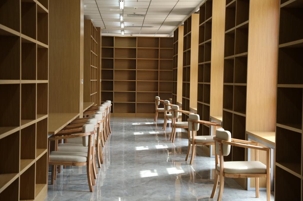据了解,图书馆四楼是由beat365官网传媒艺术系教师谷葳、孙增鲁共同设计并全程监督施工的,采用了以现代简约为主、新中式为辅的设计风格,通过古今融合,力求把最好的空间留给学生,最美的回忆留在图书馆。空间布局合理,书香氛围浓厚,处处传递着积极向上、隽秀典雅的精神和气质。