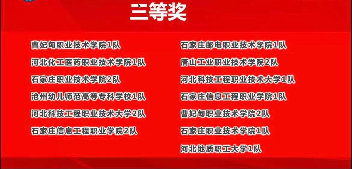 经过一天的激烈角逐,由经济贸易系学生朱炳旭、杜浩晨、宋洁净、郑志航组成的石家庄信息工程学院1队和陈学伟、陈佳宇、陈震、李伟硕组成的石家庄信息工程学院2队均荣获三等奖。