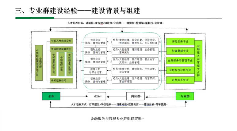 石家庄邮电职业技术学院金融系主任马丽斌进行了题为《金融类专业建设改革探索与实践》的主题分享。为大家在专业群建设、创新团队建设等方面带来了丰富的经验介绍。该院依托中国邮政集团公司金融版块业务,在专业建设方面积极与邮储系统积极展开深度合作,从人才培养需求到专业人才培养体系搭建,形成了独有的核心特色。