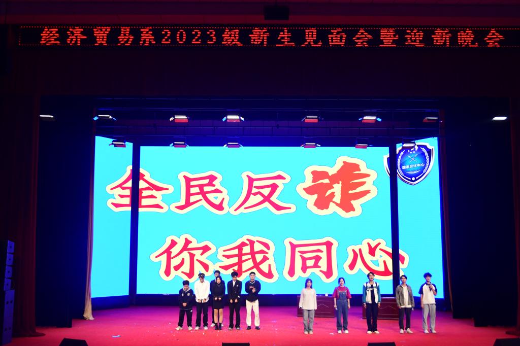 相聚在信工,扬帆再启航。为深入学习贯彻党的二十大精神,扎实开展学习贯彻习近平新时代中国特色社会主义思想主题教育,10月19日晚,经济贸易系“奋进新征程 逐梦向未来”新生见面会暨迎新晚会在昭德礼堂隆重举行。学院党委委员、组宣部部长范成宝出席,与师生共同观看晚会。