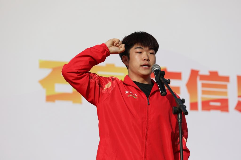 体育部王峰老师和机电工程系杜嘉鹏同学分别代表裁判员和运动员进行宣誓。
