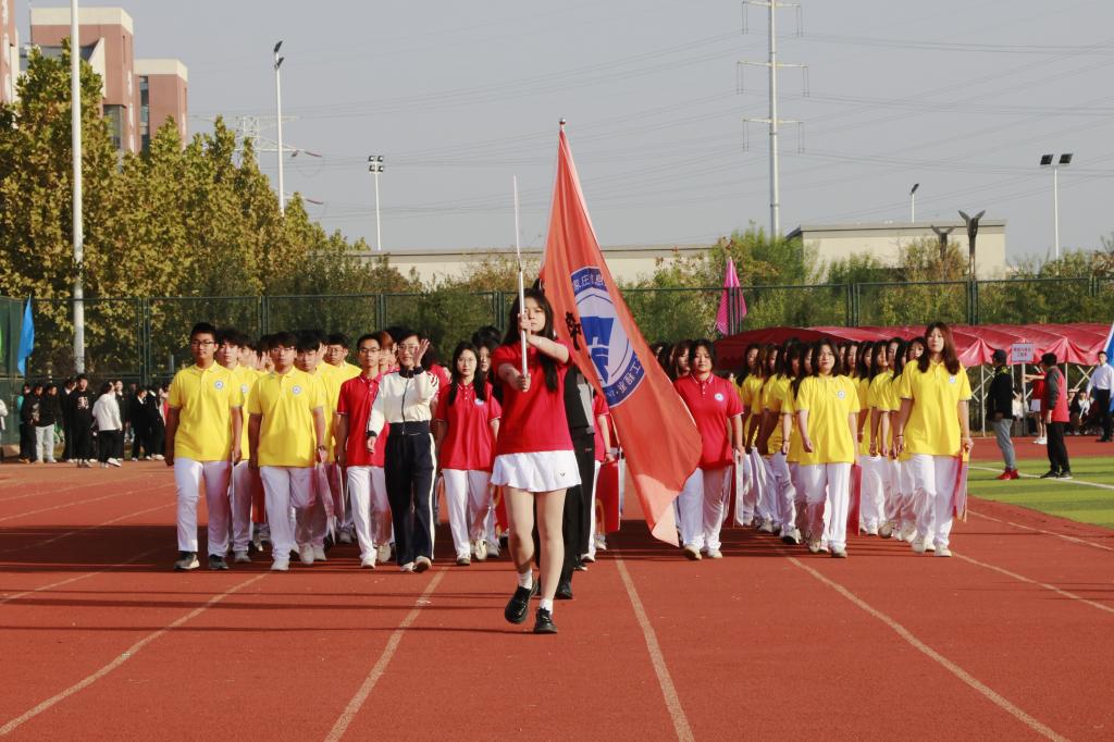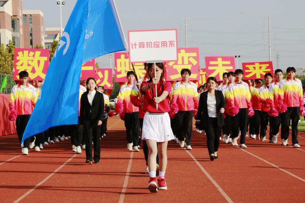 上午8时30分,国旗队、校旗队、花束队、旗林队、裁判员代表队和9支运动员代表队迈着矫健的步伐依次入场,整齐的队列、饱满的精神、嘹亮的口号、精彩的创意,传递出参与体育运动的热情,彰显着蓬勃的青春活力。现场气氛热烈而隆重,充分展现了信工师生健康向上、积极进取的精神风貌。