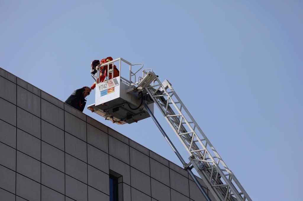 云梯消防车营救被困人员