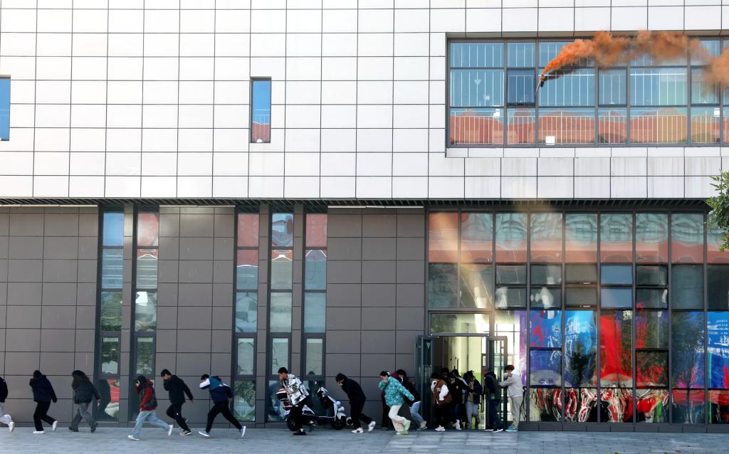 模拟发生火情,组织学生逃生