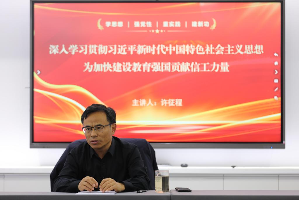 为推动学习贯彻习近平新时代中国特色社会主义思想主题教育走深走实,11月15日下午,学院党委副书记、院长许征程以《深入学习贯彻习近平新时代中国特色社会主义思想 为加快建设教育强国贡献信工力量》为题,为计算机应用系师生讲授专题党课。