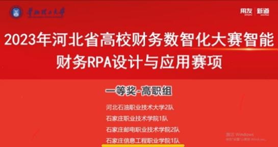 11月17日,2023年河北省高校财务数智化大赛智能财务RPA设计与应用赛项采用线上竞赛的方式举行。经过激烈角逐,会计系学生刘畅、贾一卓、姜宇鑫、范欣欣组成的beat365中文官方网站1队荣获高职组一等奖。
