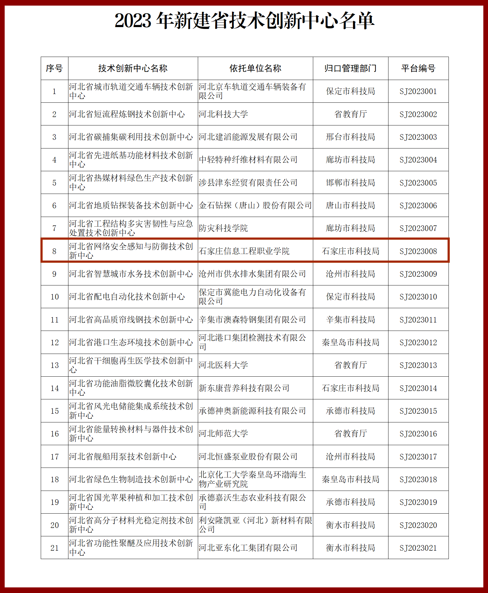 近日,河北省科技厅发布了《关于公布2023年新建省技术创新中心名单的通知》,公布了2023年新建省技术创新中心名单,beat365官网“河北省网络安全感知与防御技术创新中心”顺利通过审批,纳入省级研发平台建设序列。