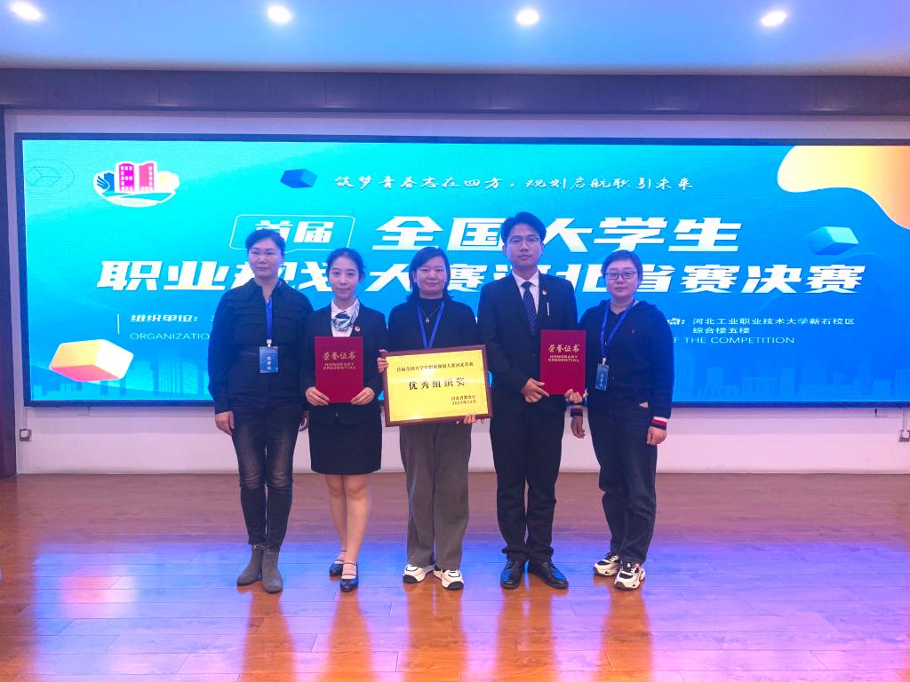12月9日,以“筑梦青春志在四方 规划启航职引未来”为主题的首届全国大学生职业规划大赛河北省赛职教组决赛在河北工业职业技术大学圆满落幕。beat365官网选手管理系杜雨润荣获成长赛道金奖、会计系郝建博荣获职教组就业赛道银奖,指导教师孔春艳、魏曼、胡宁获“优秀指导教师”荣誉称号,学院荣获优秀组织奖。
