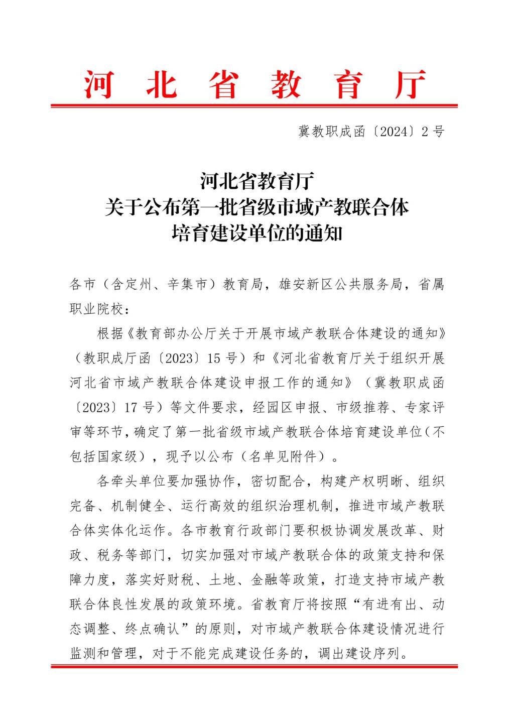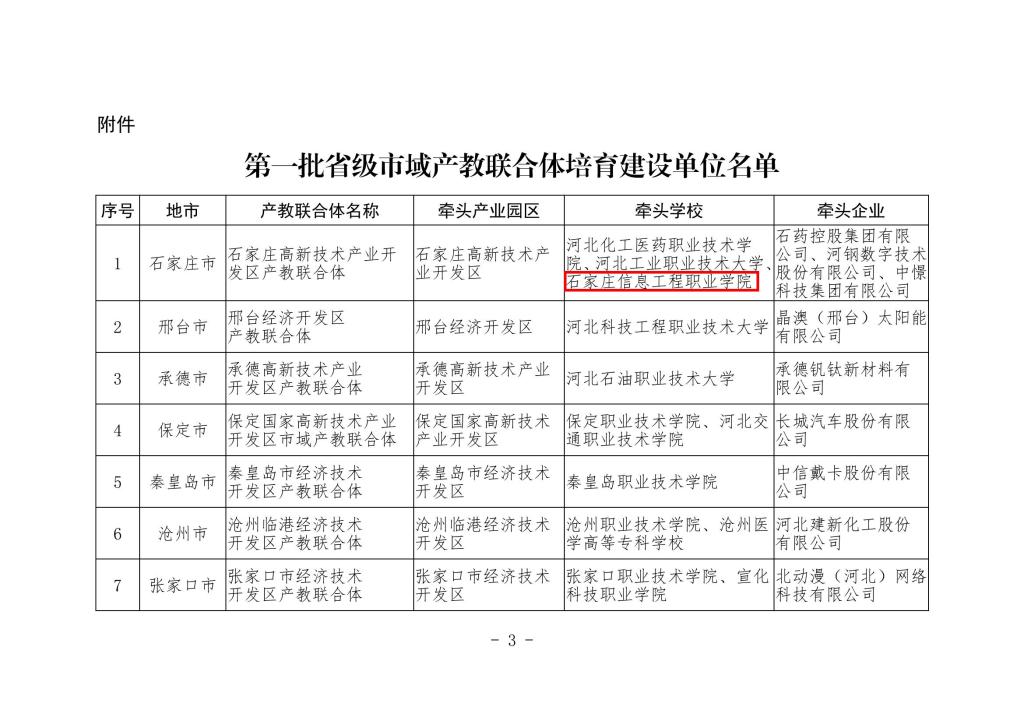 近日,beat365官网牵头申报的石家庄高新技术产业开发区产教联合体成功入选河北省教育厅第一批省级市域产教联合体建设培育单位名单。