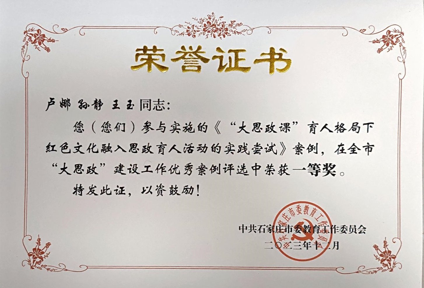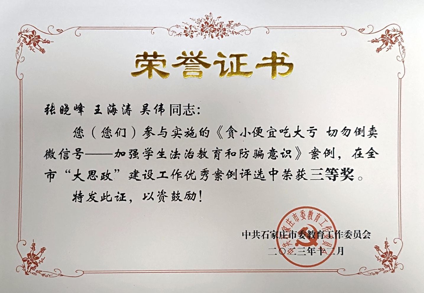 近日,市委教育工委、市教育局通报了2023年度全市教育系统新闻宣传情况和全市“大思政”建设工作优秀案例评选结果,beat365官网被评为“2023年全市教育系统新闻宣传先进单位”,组宣部汲利楠被评为“2023年全市教育系统新闻宣传优秀通讯员”。3个案例荣获一等奖,1个案例荣获三等奖。