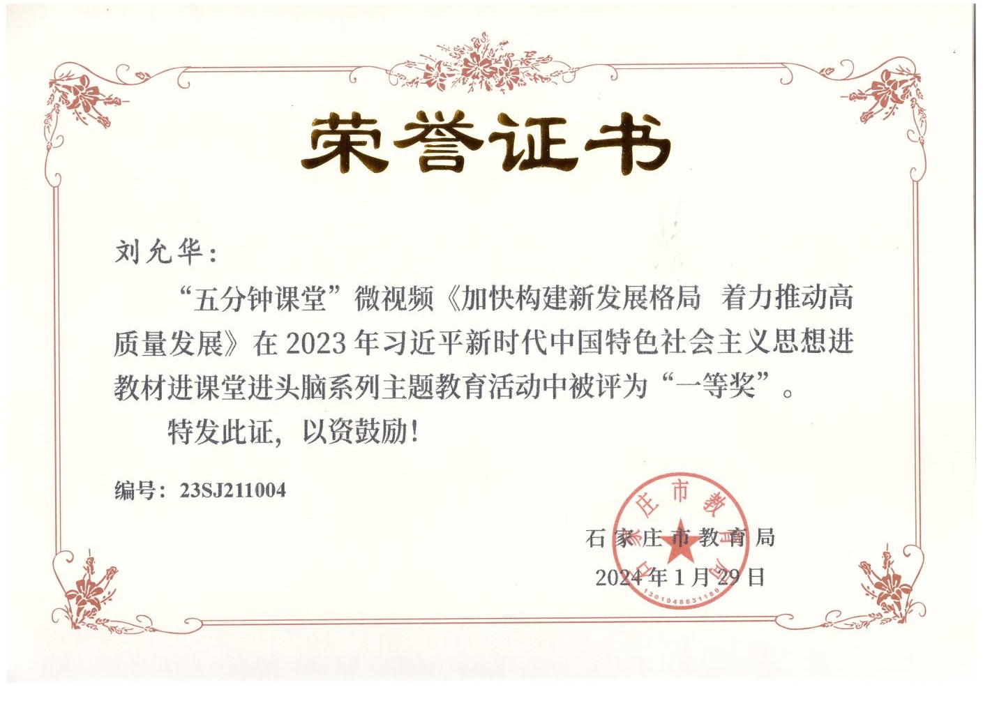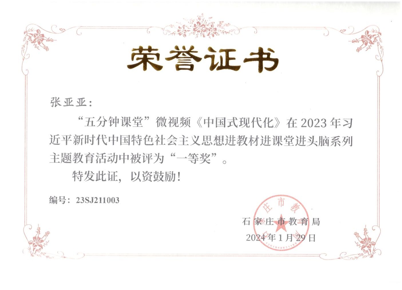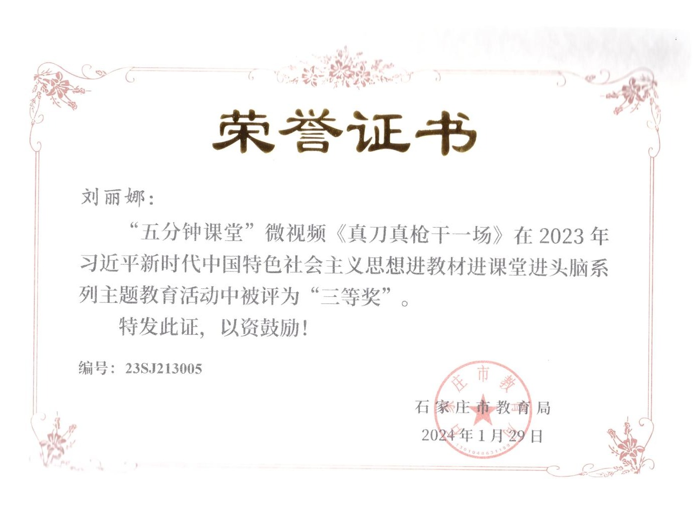 近日,由石家庄市教育局主办的“2023年习近平新时代中国特色社会主义思想进教材进课堂进头脑系列主题教育”活动落下帷幕,马克思主义学院教师在活动中荣获“五分钟课堂”微视频比赛一等奖2项、二等奖2项、三等奖2项,指导学生参与的“100个党史小故事”宣讲视频比赛7人荣获一等奖、3人荣获二等奖,4人荣获三等奖。