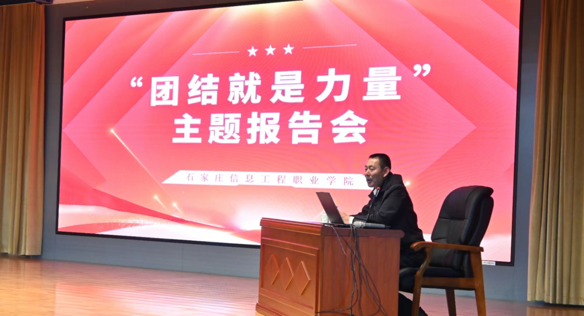 “团结就是力量”主题报告会在图书馆报告厅举行,吸引了传媒艺术系400余名师生代表、马克思主义学院教师代表现场聆听。封红卷深情讲述了北庄村的发展历史以及歌曲《团结就是力量》的诞生,带领大家重温了习近平总书记给北庄村全体村民的回信。“如今的北庄村一派新图景,产业结构不断优化,村容村貌明显提升,群众收入有了新提高,北庄村传承红色基因,发扬‘团结就是力量’精神,奋力书写乡村振兴新篇章。”封红卷自豪地讲道。他鼓励广大青年要积极返乡,为乡村振兴注入新活力,让青春在广袤的田野上绽放绚丽之花。