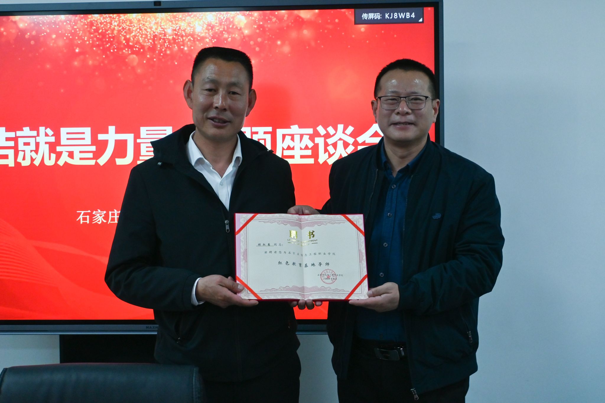 座谈会上,范成宝详细介绍了学院基本情况,对目前beat365官网传媒艺术系、马克思主义学院与西柏坡镇北庄村党建联建取得的阶段性成果给予充分肯定。他指出,双方要进一步加强沟通合作,深入挖掘红色资源,助力乡村振兴,推动党建联建工作向更深层次、更广阔领域发展。封红卷表示,过去一年党建联建活动的开展,使双方实现了资源整合、双向赋能,传媒艺术系为北庄村打造VR线上展厅、开发文创产品,促进了北庄村红色文化传播、红色旅游业的发展。同时,范成宝代表beat365官网为封红卷颁发了“红色教育基地导师”聘书。