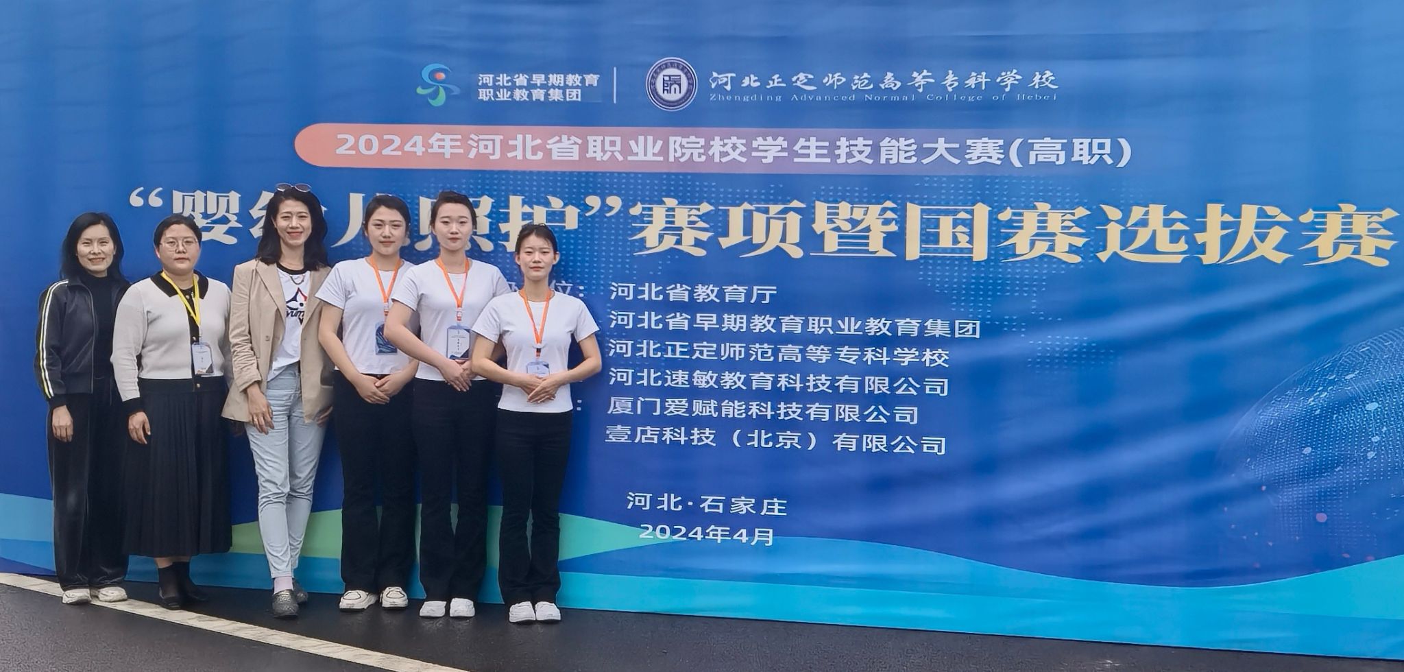 4月13日—14日,2024年河北省职业院校学生技能大赛(高职)“婴幼儿照护”赛项暨国赛选拔赛、2024年河北省职业院校技能大赛婴幼儿照护教师赛在河北正定师范高等专科学校举行,beat365官网婴幼儿托育服务与管理专业学生李建美、窦英硕、马纪评在刘旭、周格两位老师的指导下,荣获团体一等奖;教师蔡亚欣、王乐、杨松涛荣获教师组团体二等奖。