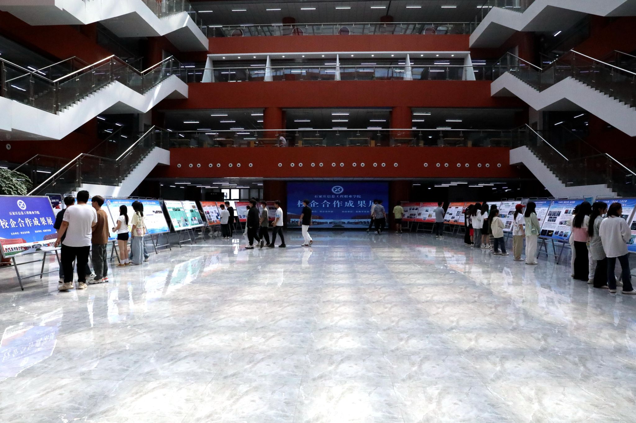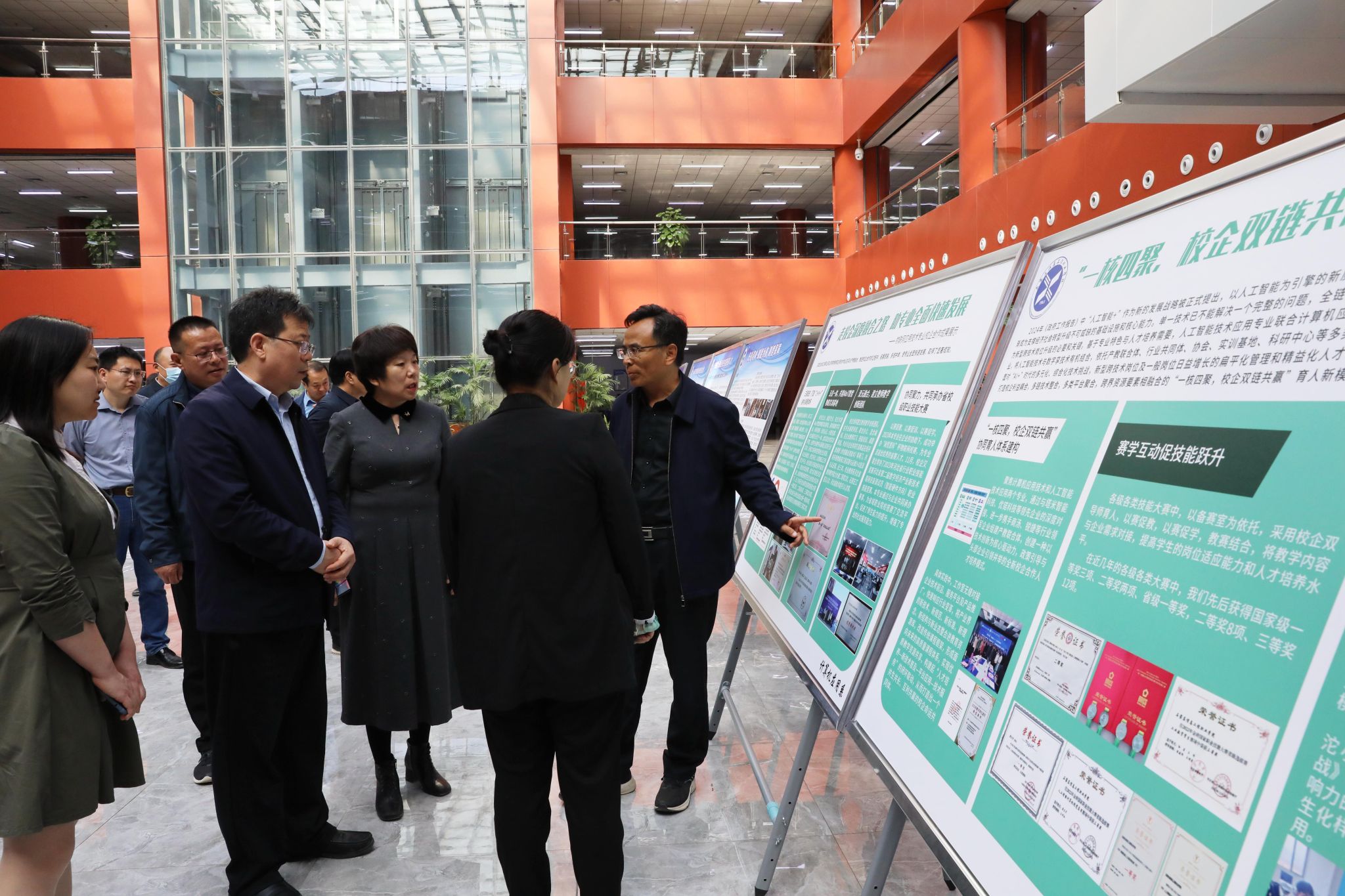 此次成果展由校企合作部主办、各系部协办,为期一周。各系部书记、主任、教师及学生代表参加活动。展览以文本、图片、视频、实物类产品等形式重点展示了对接产业解决企业实际需求情况、校企联合开展协同育人情况、优秀毕业生典型、师资队伍建设、订单教育等产教融合成果,各位领导对各专业在校企合作方面取得的优秀成果给予了充分肯定和高度评价。