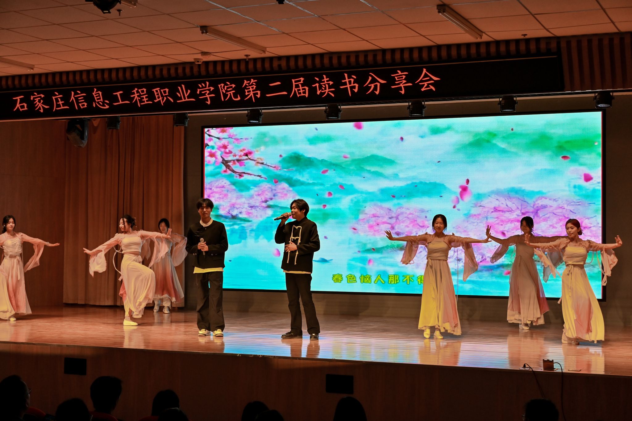 本次活动,传媒艺术系的同学们也为大家带来了歌伴舞《上春山》及朗诵《在中国大地上报道》。