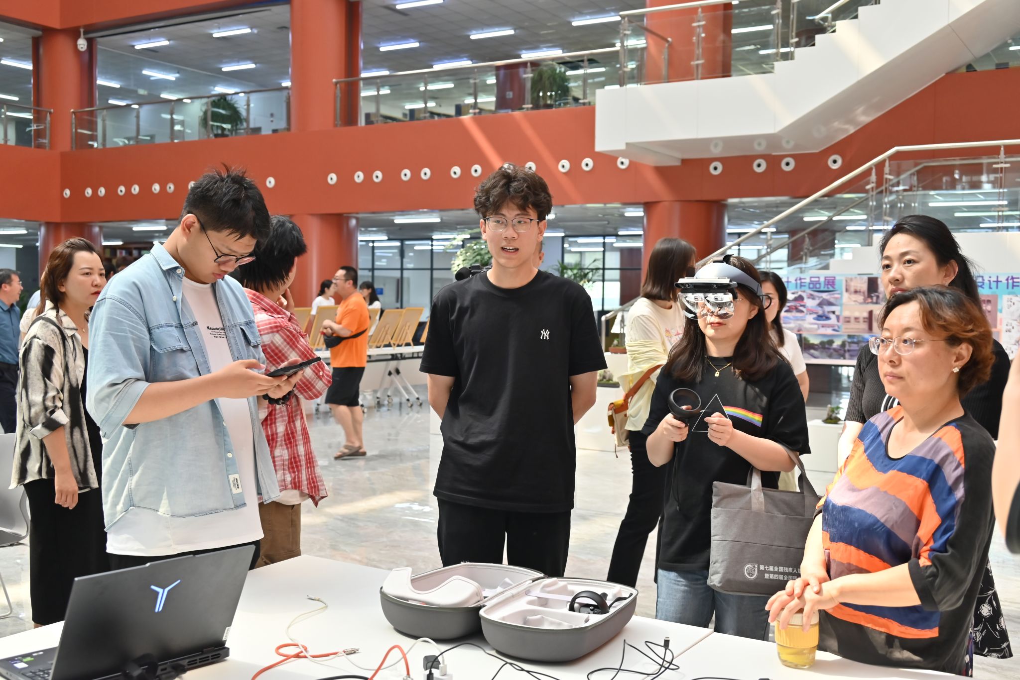 VR数字化展览活动是此次活动周展示的重点。传媒艺术系开放了数字创意类产教融合实训基地及数字创意类示范性虚拟仿真实训基地,组织联系社会公众参与VR、MR等虚拟现实技术的现场体验,系部科研团队利用智能数字化平台或人工智能技术,推出AI驱动的虚拟数字人、元宇宙体验空间、活动周数字展馆等融合现代信息技术的展示活动,力争让观众充分感知现代虚拟现实技术的奇妙和科技进步对现实生活的影响。