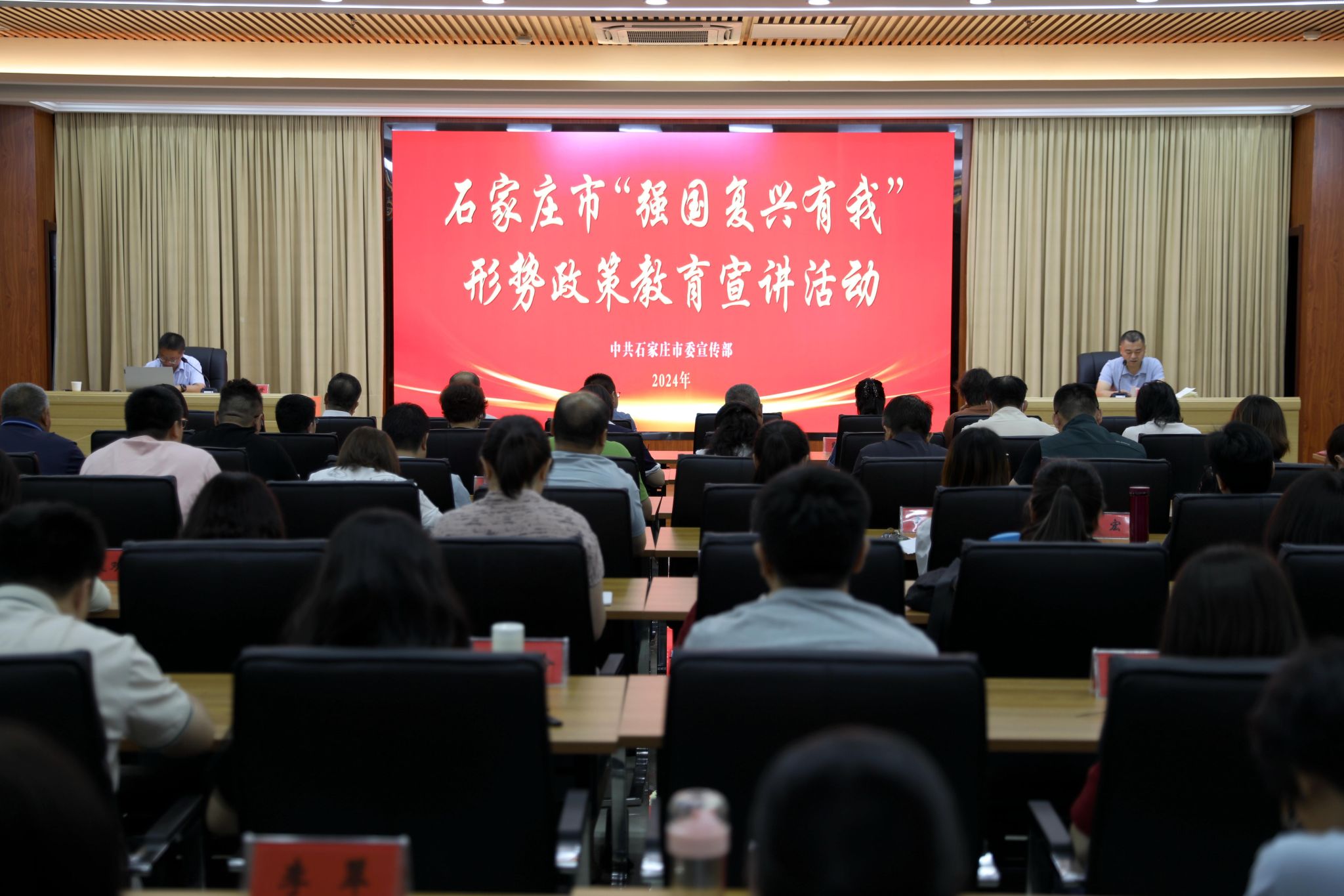 9月5日,由市委宣传部举办的“强国复兴有我”形势政策教育宣讲活动走进beat365官网。石家庄市发展和改革委员会党组成员、副主任杜威世以《新中国75周年奋斗历程》为题,深入讲解了新中国75年的奋斗历程、新中国75年的巨大成就、75年伟大奋斗中的石家庄巨变,并就持续奋斗,夺取新时代中国特色社会主义伟大胜利讲了思路。市委宣传部社会宣传科科长王培主持。