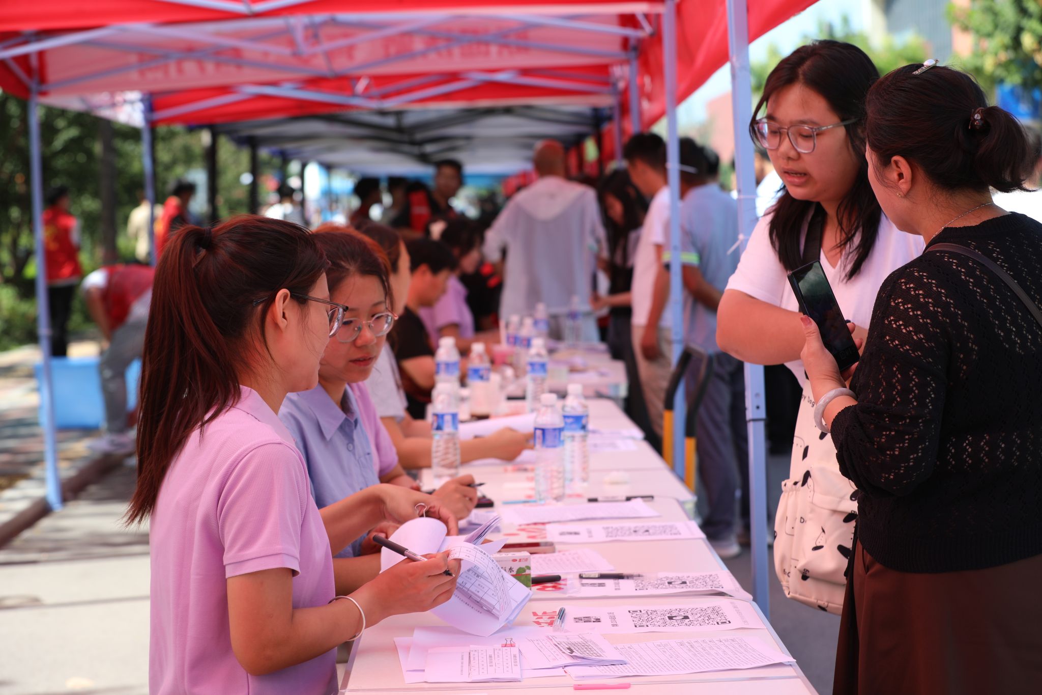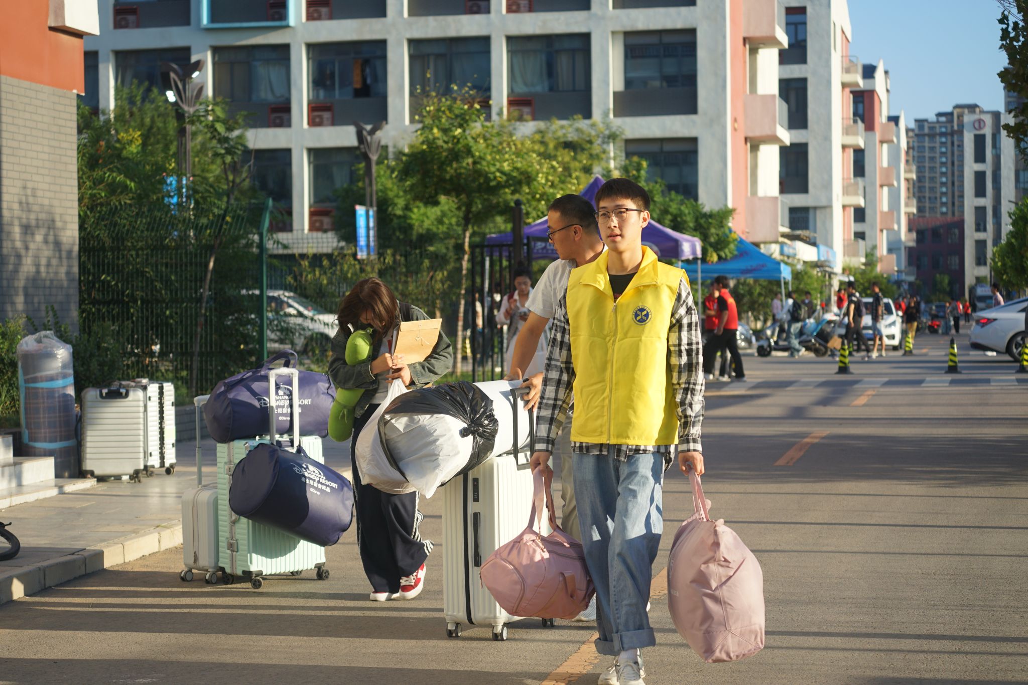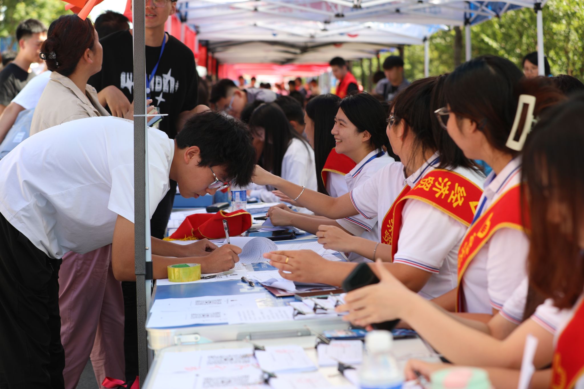 迎新工作是如期而至的守候,更是一次双向奔赴的相见。为全力以赴做好迎新工作,切实增强新生及家长的体验感,学院多次召开专题会议调度部署,坚持将人文关怀放在首位,在保障好新生报到顺利有序的同时,全面面向家长开放图书馆、天健体育馆和昭德礼堂等校内公共场所,让一路奔波的家长拥有片刻休憩,深度感受信工温度。各行政处室和系部各司其职,合力共为,精心组织,细化分工。从帐篷搭建、氛围营造到车辆调度、接站引导,从秩序维护、志愿服务到报到接待、缴费办理、绿色通道,从被褥采购、卫生清洁到医疗救护、餐饮服务,从数据收集、畅通网络到政策咨询、宣传报道,穿梭于人群中,忙碌而喜悦,为新生及家长提供全方位、一体化服务,倾情周到,细致入微。