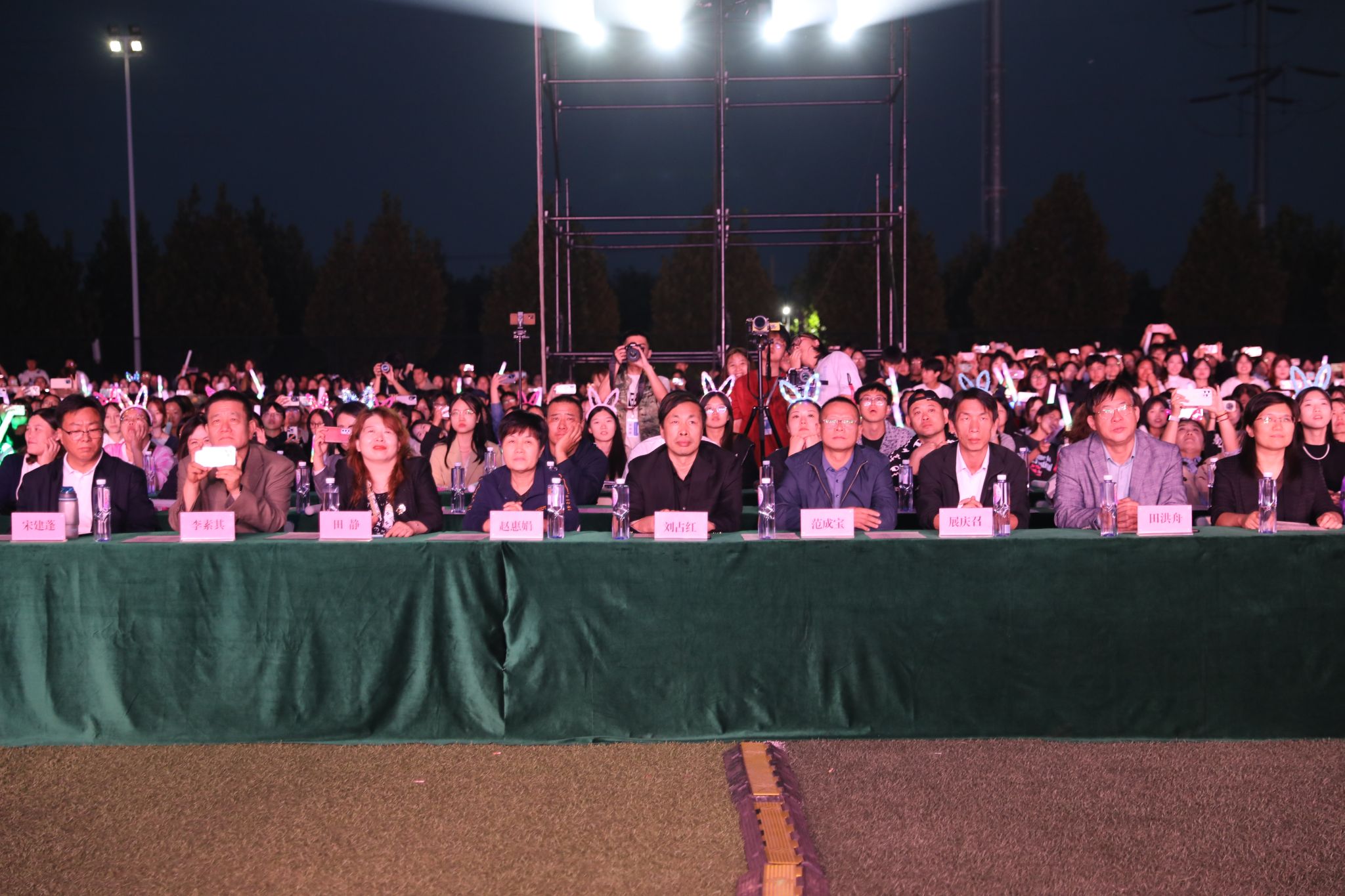 彩灯装饰下的操场显得格外温馨。18点30分,学院副院长刘占红,纪委书记赵惠娟,学院党委委员、组宣部部长范成宝步入会场,热烈的掌声响起,晚会正式开始。