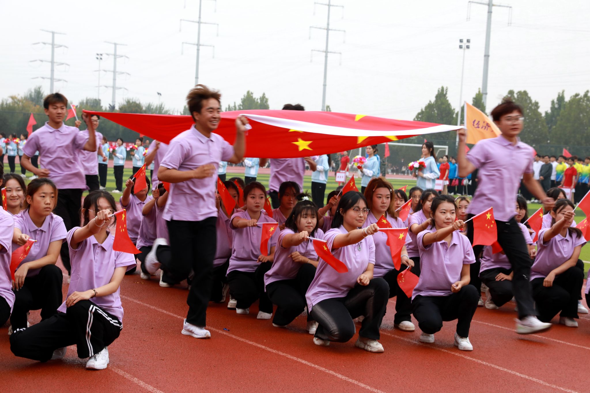 燃动青春,尽情绽放。啦啦操表演《舞动青春》手持闪耀的花球涌向绿茵场,以整齐划一的动作、充满活力的舞姿瞬间点燃现场气氛;瑜伽表演《舞韵瑜伽》以其清新而宁静、优雅与深邃传递出身心平衡、和谐共生的理念;传统武术表演《龙飞扇舞》时而昂首阔步,时而腾空而跃,刚柔相济,动静交错;航模表演引擎轰鸣,同学们亲手制作的各式航模在空中自由翻转、你追我赶,划出一道道优美的彩色曲线,展示了高超的飞行技巧和团队协作能力。掌声经久不息,喝彩声此起彼伏。