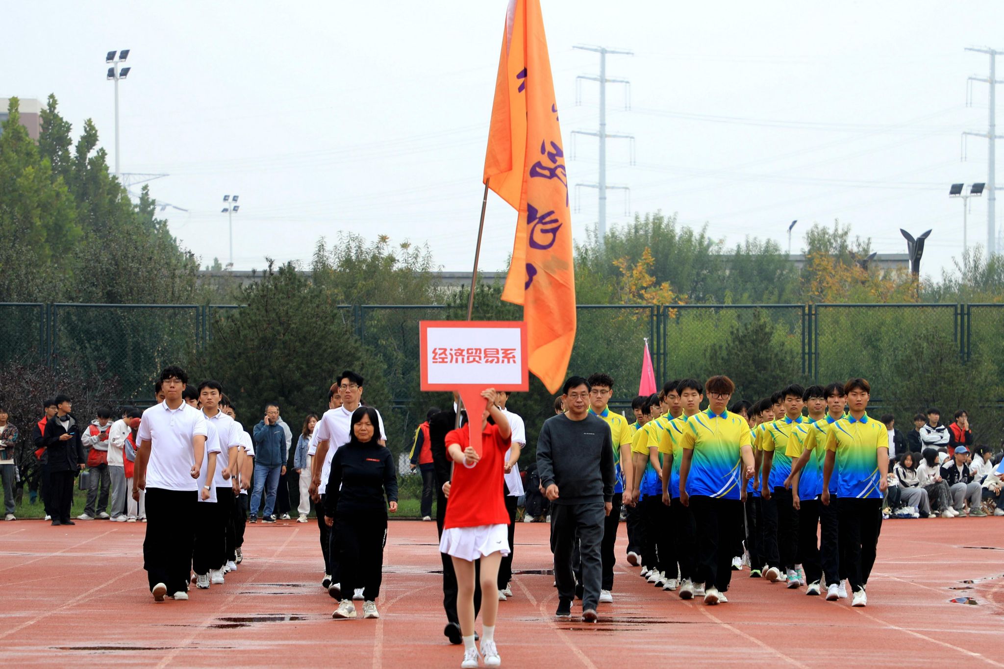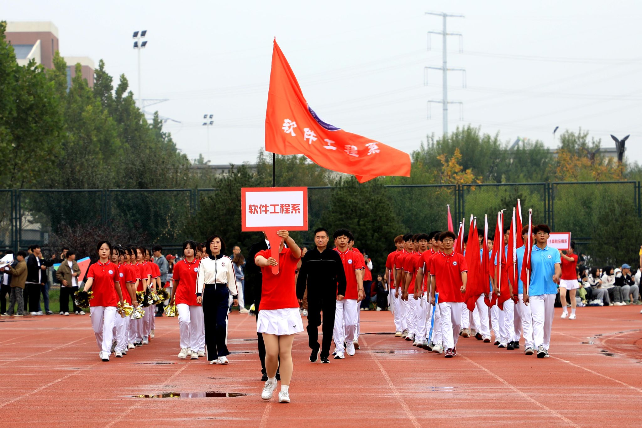 踏着激昂的《运动员进行曲》,国旗护卫队、校旗队、花束队、旗林队、裁判员代表队和来自各系的10支运动员代表队迈着铿锵有力的步伐依次入场,以昂扬的姿态、嘹亮的口号、新颖的创意展示了信工人特有的精神气质,体现了信工人的自信与热情。