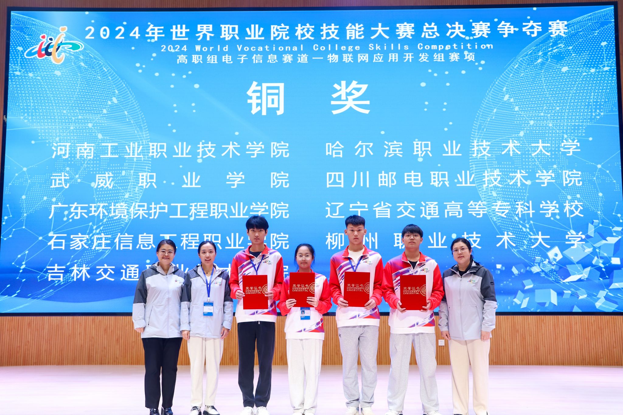 ▲计算机应用系学生李林、贾梦阳、祝鑫、杨保利荣获物联网应用开发组铜奖