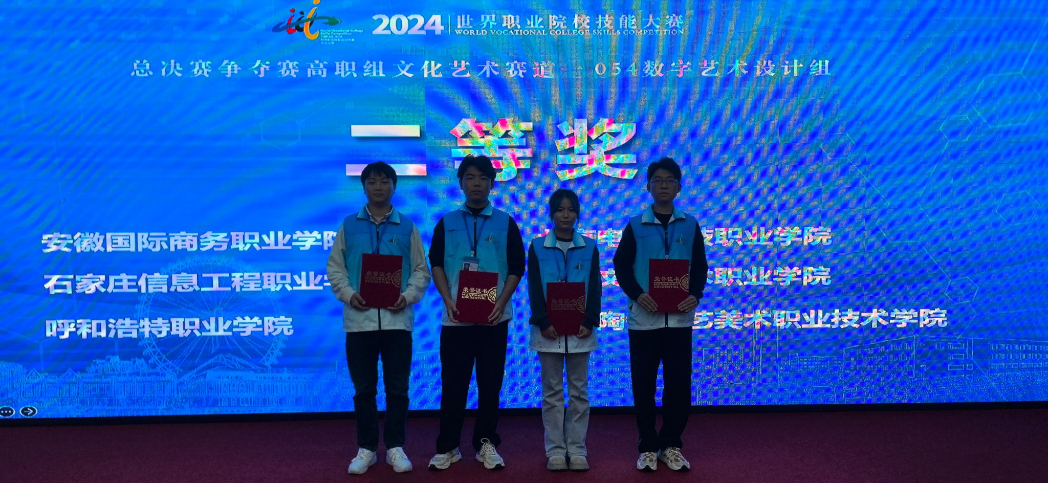 ▲传媒艺术系学生刘天宇、张雨薇、杨梓楠、李文硕荣获数字艺术设计组银奖