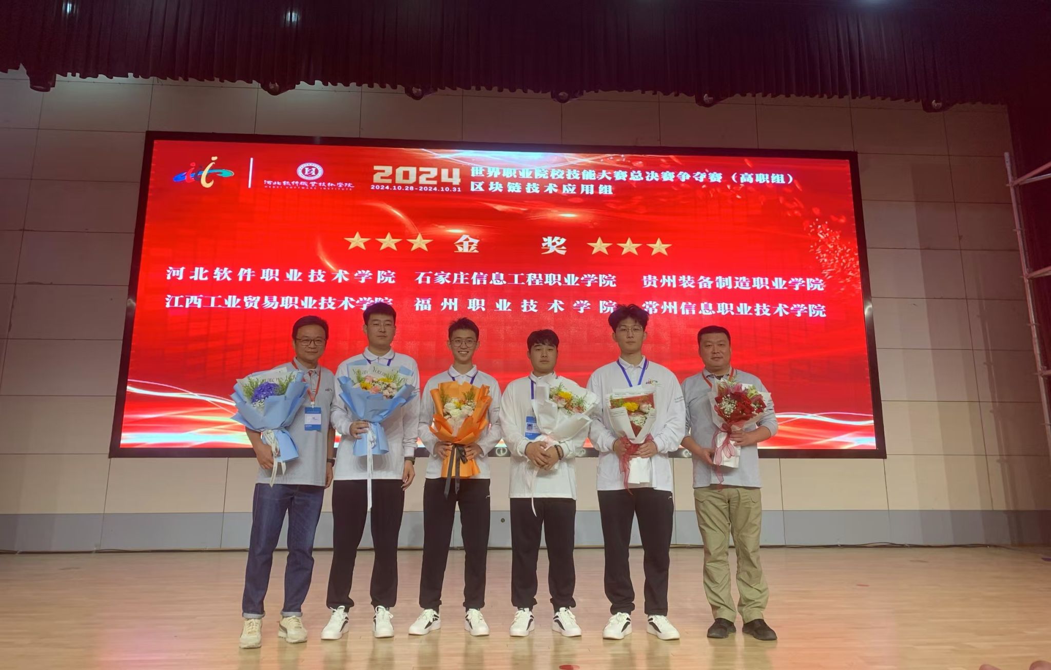 ▲软件工程系学生张世军、丁新旭、迟新程、和旺阳荣获区块链技术应用组金奖