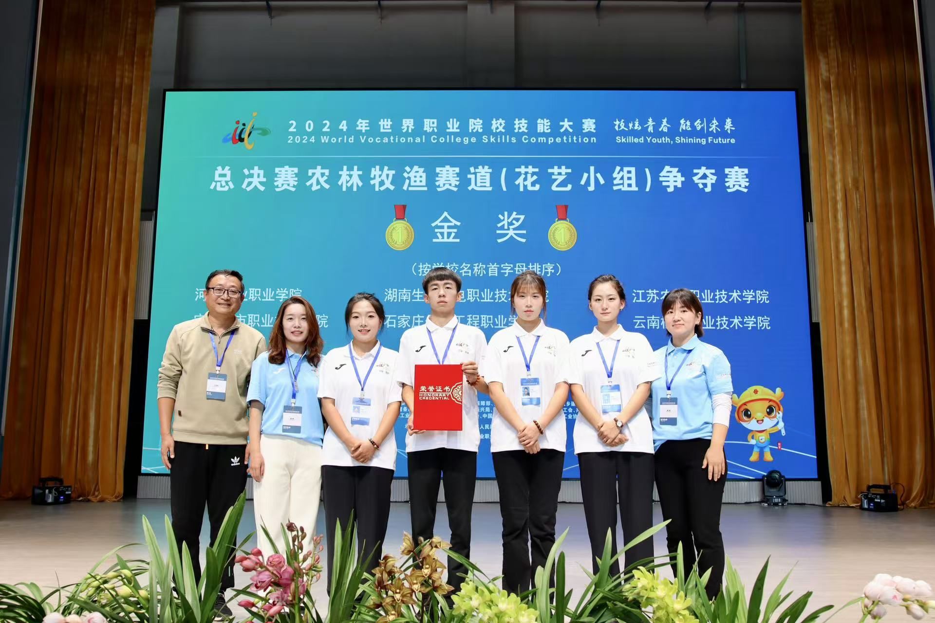 ▲农林牧医系学生刘成兴、王梓茜、马博宁、闫雯娟荣获花艺组金奖