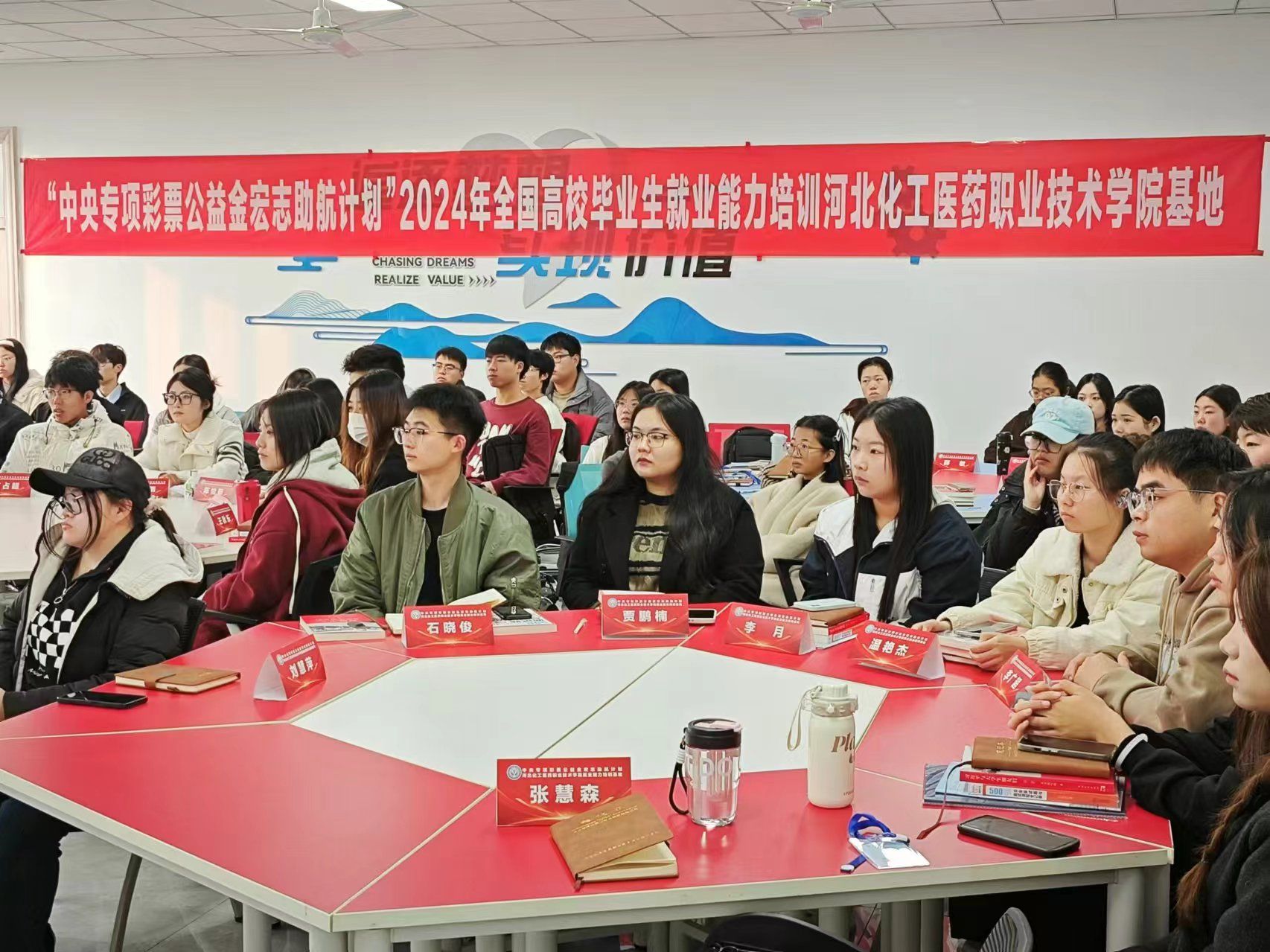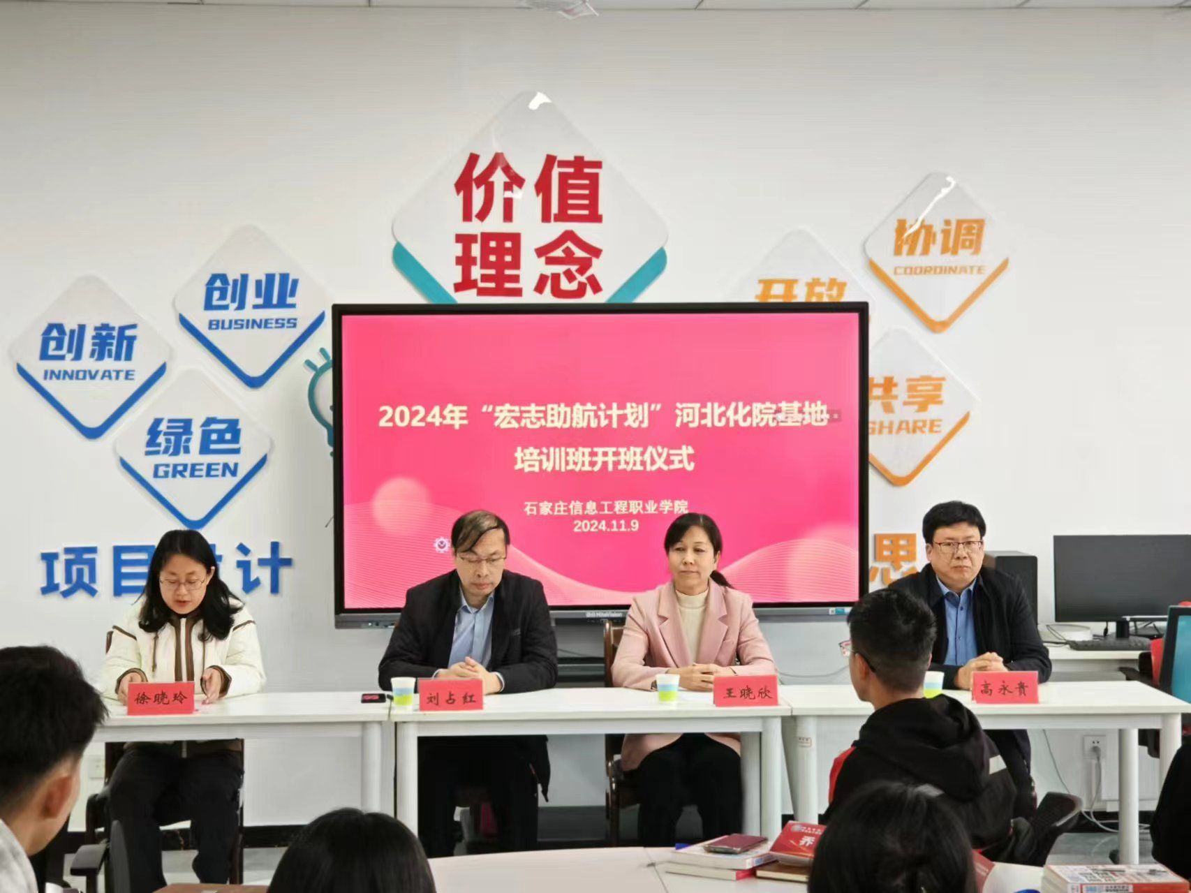 刘占红在讲话中对2024年“宏志助航计划——全国高校毕业生就业能力培训”顺利开班表示祝贺,并对河北化工医药职业技术学院给予本次培训的大力支持表示感谢。他强调,当前就业形势下,举办“宏志助航计划”培训班不仅是落实教育部、国务院“稳就业”“保就业”决策部署,也是推动毕业生高质量就业的重要举措。同时,对参训学员提出三点期望:一是希望同学们珍惜机会,认真学习,积极思考,将所学转化为实际行动,提升就业竞争力;二是希望同学们主动实践,学以致用,通过学习切实提高自身职业素养和求职择业能力;三是希望同学们坚定信心,努力将自身职业发展融入国家发展战略,到祖国最需要的地方建功立业,实现尽早就业、高质量就业。