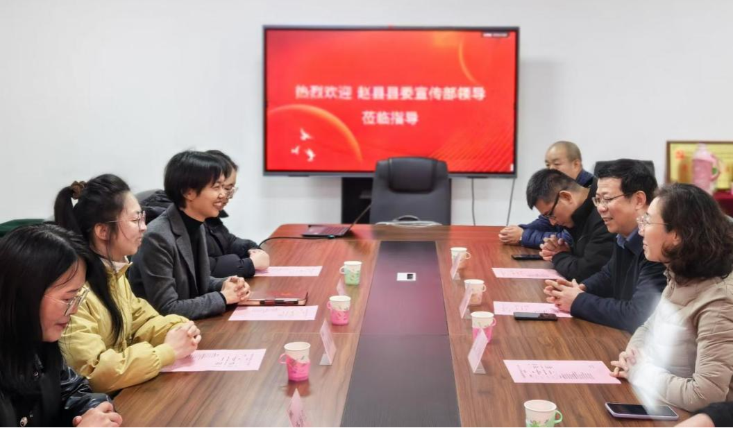 近日,赵县县委常委、宣传部部长王晓冉带领赵县宣传部副部长、赵县博物馆馆长等一行人来到beat365官网,双方就校地战略合作落地见效、文创产品研发早结硕果等相关工作开展工作推进会议。院长许征程、副院长赵伟出席。
