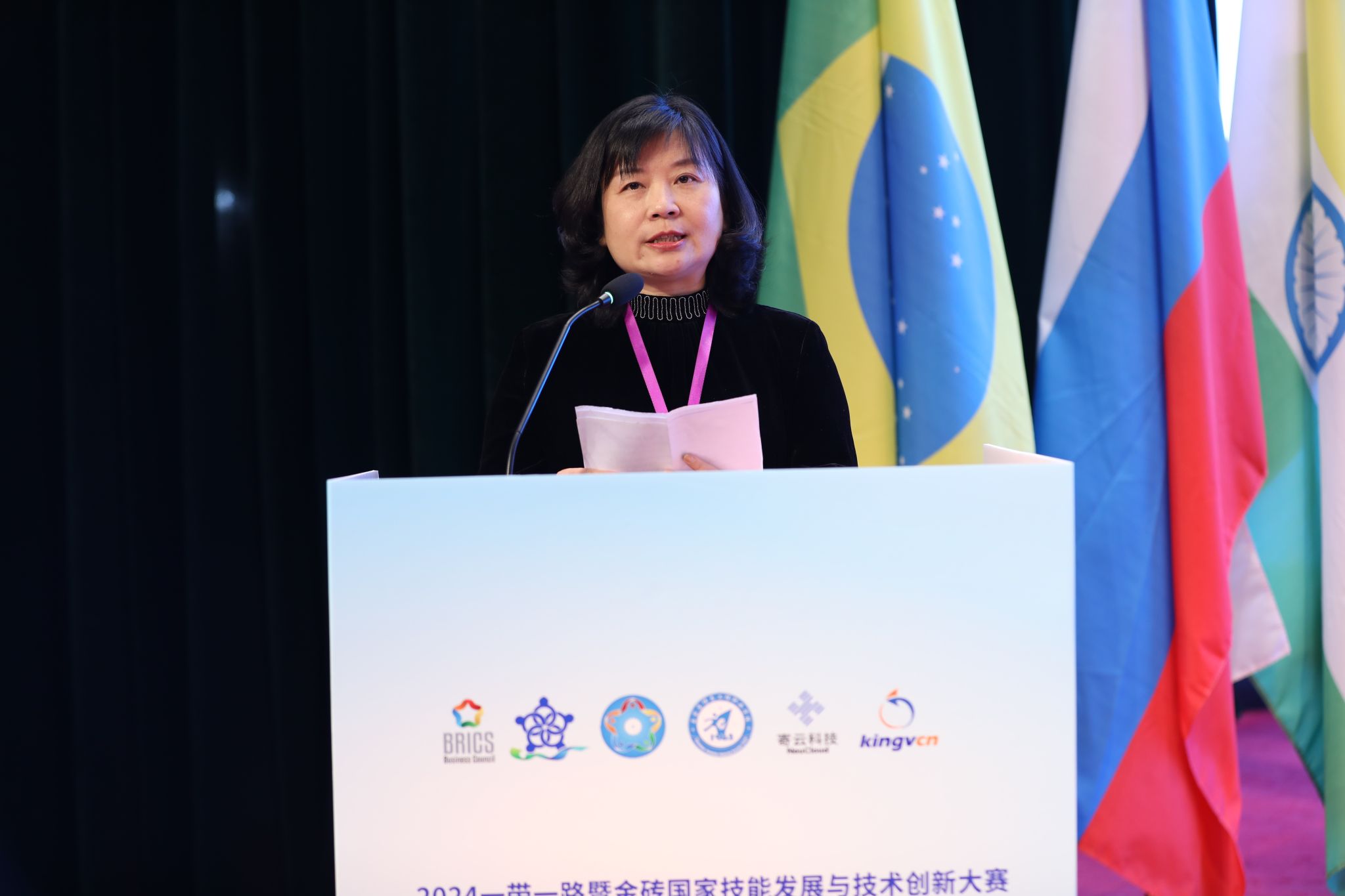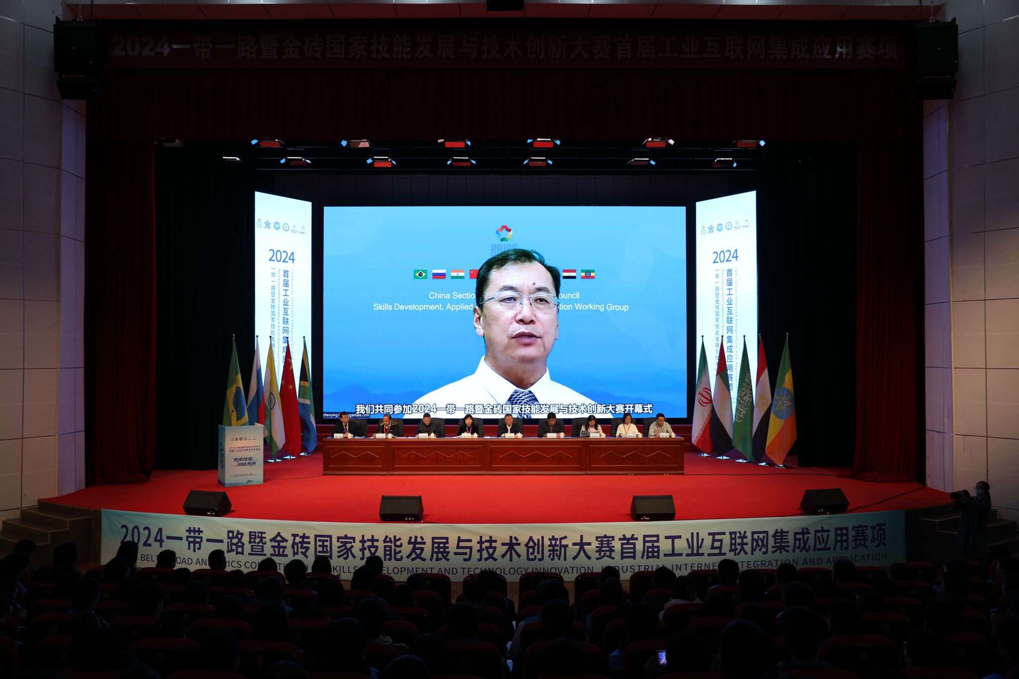 金砖国家工商理事会技能发展、应用技术与创新中方工作组组长,一带一路暨金砖国家技能发展国际联盟理事长刘振英博士致辞。他表示,“一带一路”倡议为各国的合作与发展带来了前所未有的机遇,金砖国家的合作机制也在不断深化拓展。感谢各位领导、各位专家以及社会各界同仁对金砖国家技能发展与技术创新大赛的关注和支持,并预祝各参赛队取得理想成绩、预祝赛项取得圆满成功。
