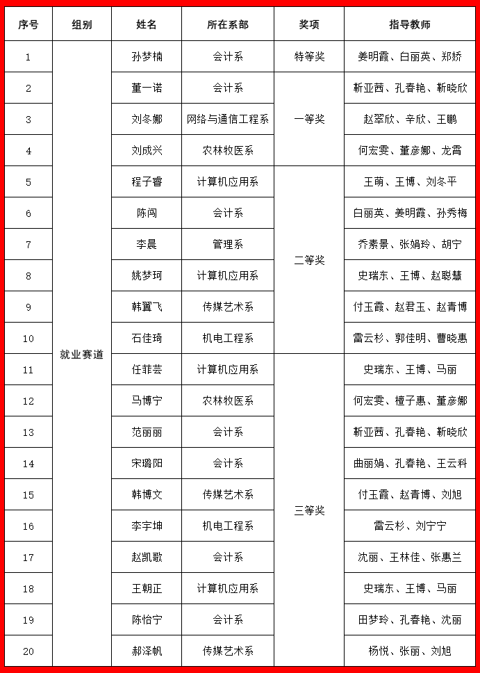 颁奖仪式上,还对获奖选手的指导教师及在本次校赛组织中做出突出贡献的会计系、网络与通信工程系、机电工程系进行了表彰。