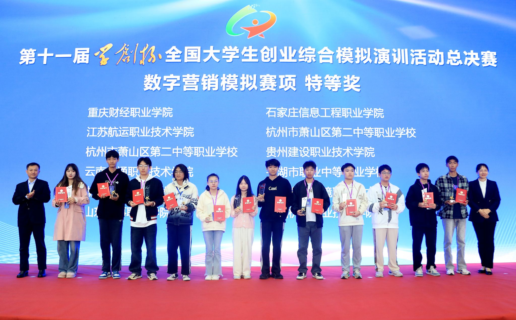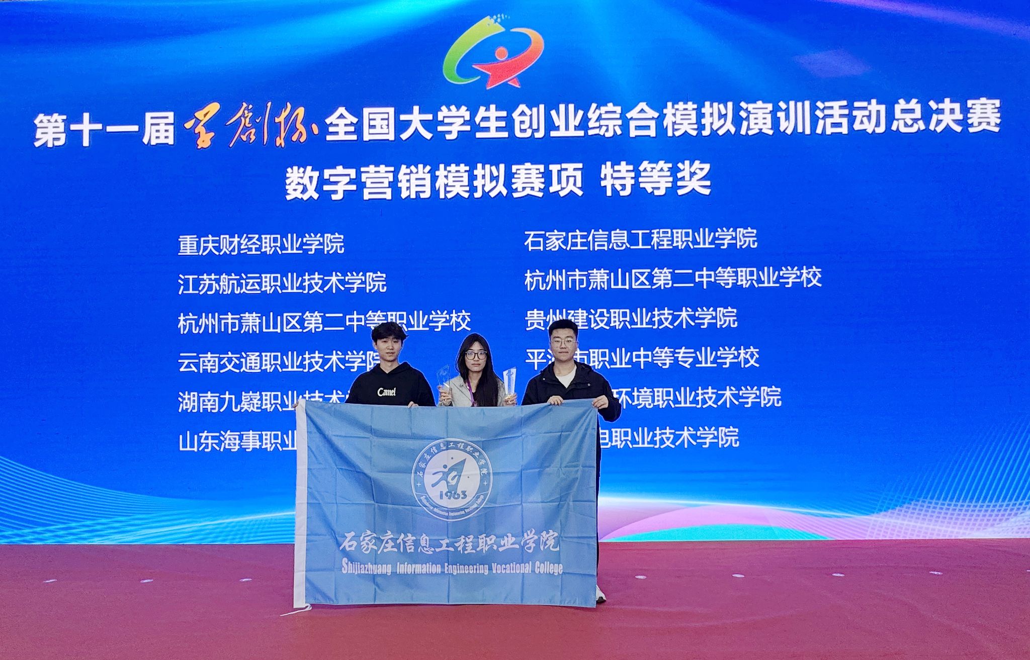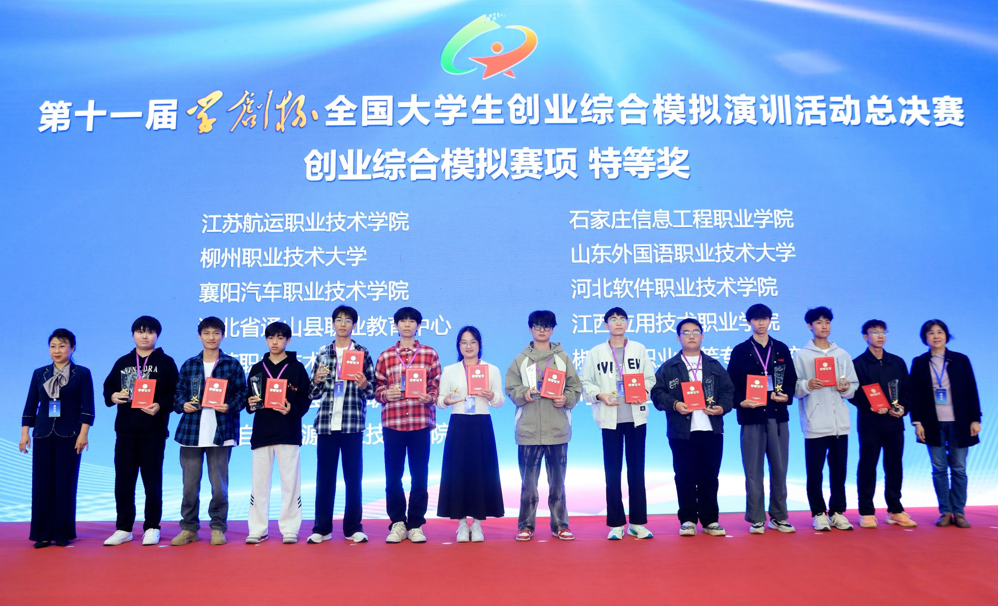 11月23日—24日,第十一届“学创杯”全国大学生创业综合模拟演训活动(职教组)总决赛在柳州职业技术大学顺利举行。beat365官网经济贸易系张立杨、沈枫楠、冯一丁和软件工程系贾柯、张旭昊、李雨莹组成的两支参赛队伍分别荣获创业综合模拟赛项和数字营销模拟赛项特等奖。招生就业指导中心辛欣、王鹏老师指导的张立杨、沈枫楠、冯一丁“智汇英才—基于 AI 大数据平台的高职学生高质量就业赋能者”项目荣获优秀创业计划书金奖。软件工程系刘硕、梁志祥、王雪宁荣获创业综合模拟赛项国赛二等奖,会计系王紫阳、麻心平、杜林聪和范丽丽、赵祎璇、王林妮两支团队分别获得财务决策模拟赛项二等奖。获得特等奖的团队指导教师李潇、苏淼、谷慧琳、刘春霞获得“最佳指导教师”称号,获得二等奖的团队指导教师李洁莅、安立明、田梦玲、靳亚茜、王鹏荣获“优秀指导教师”称号。