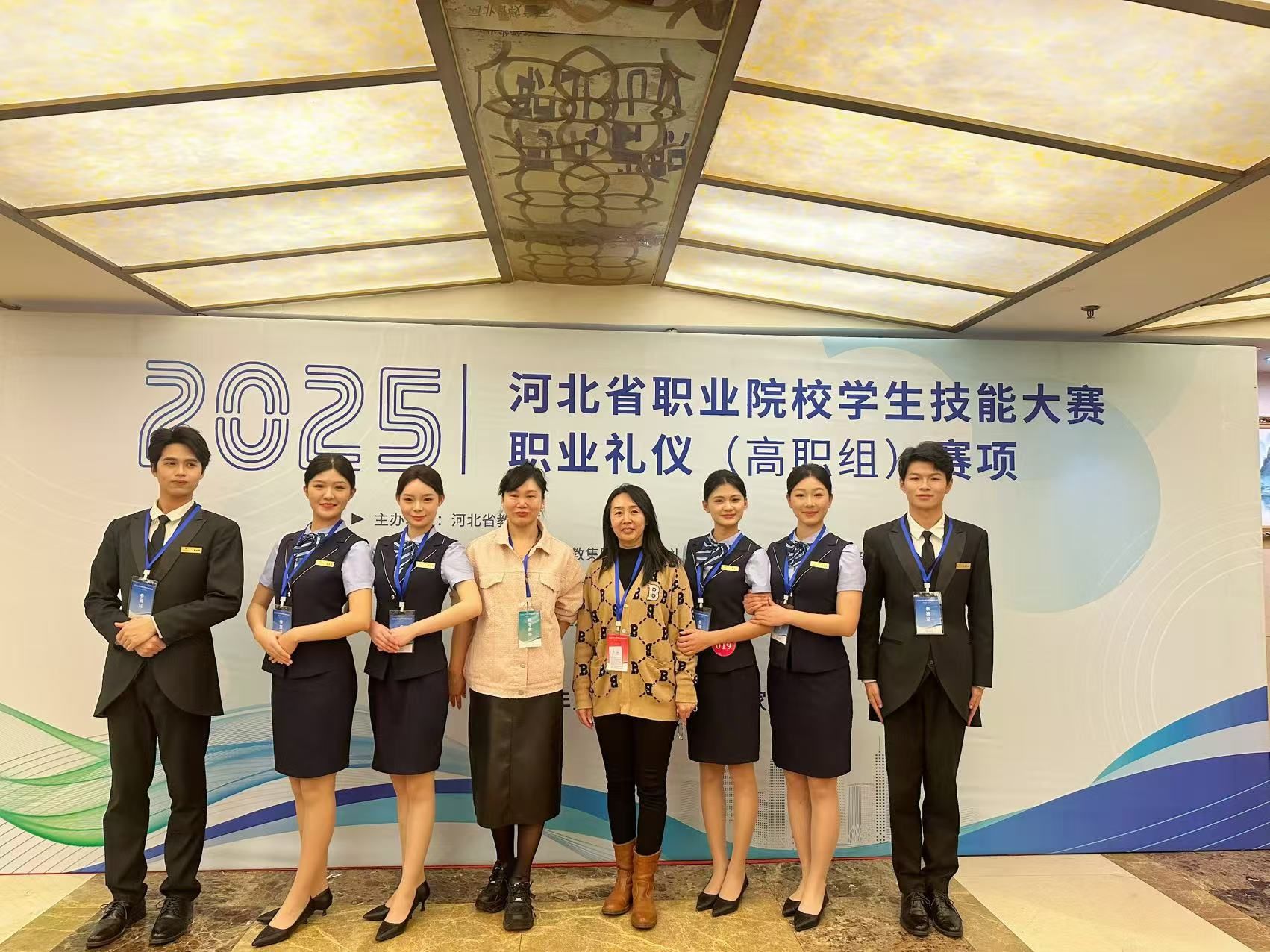 12月26日至27日,2025年河北省职业院校学生技能大赛职业礼仪(高职组)赛项在石家庄神州七星酒店举行。本赛项为团体赛,beat365官网管理系学生成珂、李孟函、孟德友,生物医药技术系学生闫冬乐,农林牧医系学生胡天月,软件工程系学生刘硕组成代表队,在邵东风和孔春艳两位老师的悉心指导下,荣获二等奖的好成绩。