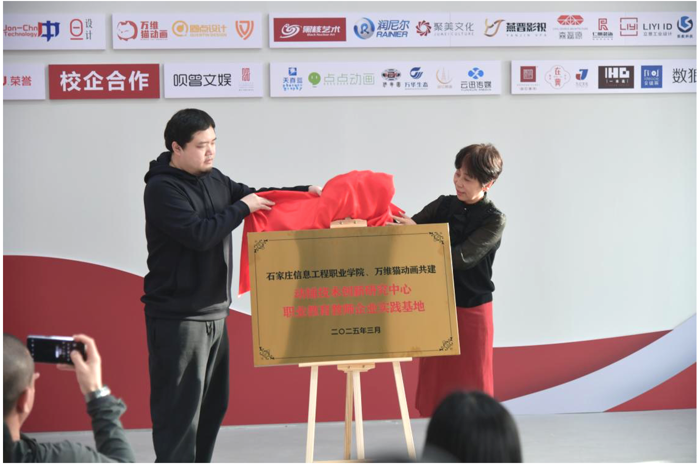 随后,学院校企合作部负责人与王裕仁共同为“动捕技术创新研究中心”揭牌,标志着校企双方资源的高效整合正式启动。