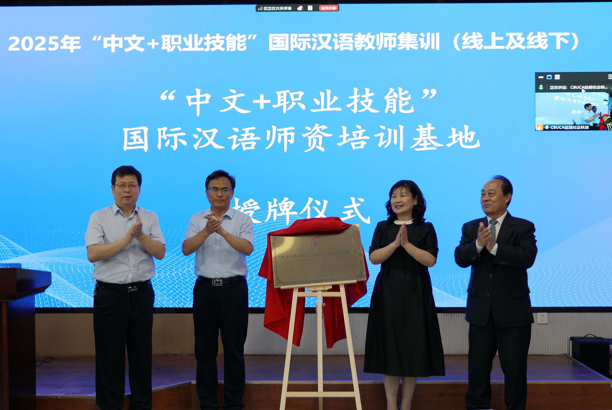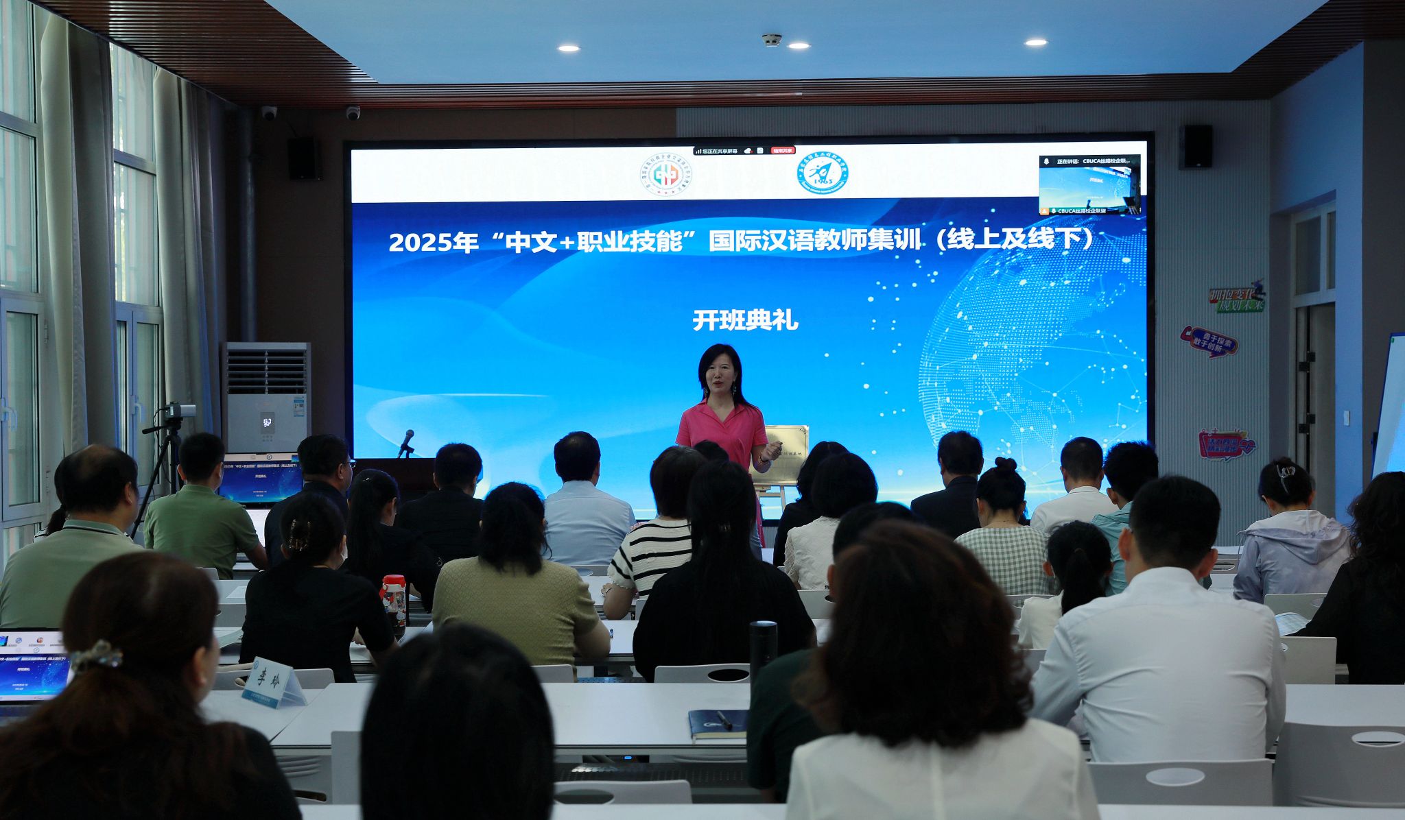 6月6日上午,全国首家以“中文+职业技能”为特色的国际汉语师资培训基地在beat365官网举行揭牌仪式。院长许征程、副院长赵伟、“一带一路”国家院校和企业交流协会中方理事会秘书长董进、北京语言大学朱庆明教授出席仪式,广东农工商职业技术学院、上海城建职业学院、江西旅游商贸职业学院、内蒙古化工职业学院、石家庄铁路职业技术学院等近二十所院校代表及参培学员100余人通过线下线上参会。