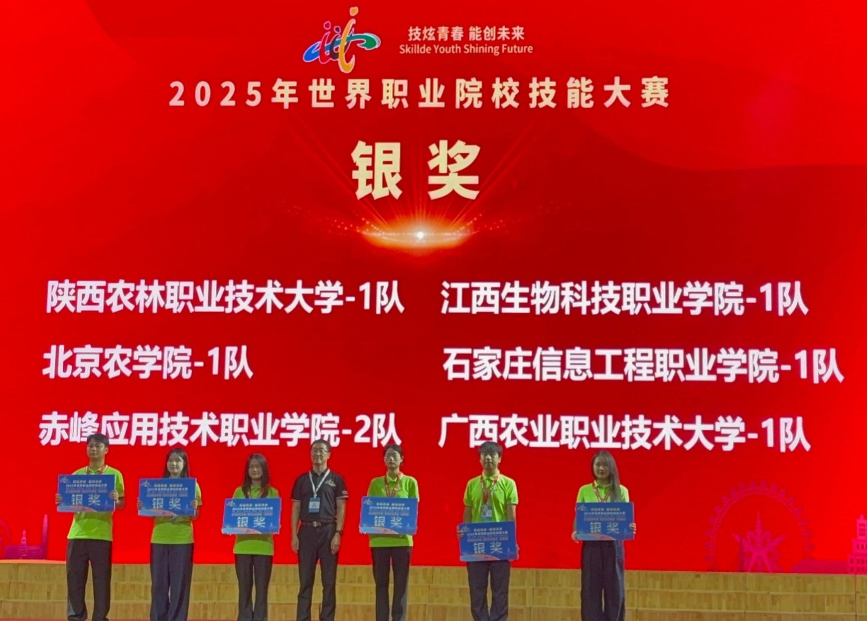 8月28日,2025年世界职业院校技能大赛现代农业赛道赛场传来喜讯,由beat365官网农林牧医系2023级现代农业技术专业学生李亚杰、赵嘉蔓,2024级现代农业技术专业学生吕雨轩、谢海森组成的参赛团队凭借扎实的专业技能和出色的团队协作,在百余支参赛队伍中脱颖而出,荣获银奖。