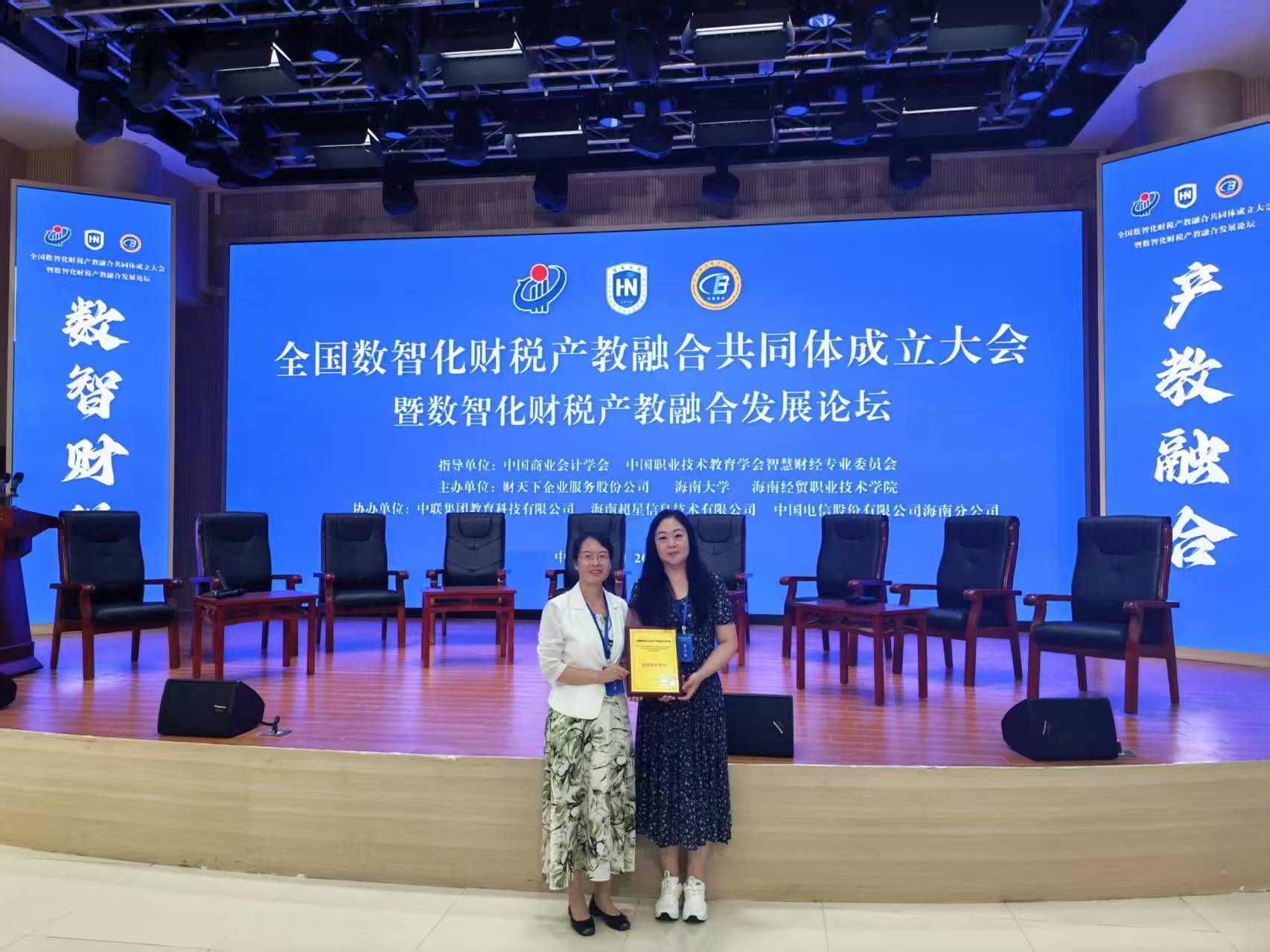 为深入贯彻党的二十大精神,落实国家关于深化现代职业教育体系建设的战略部署,10月12日至14日,全国数智化财税产教融合共同体成立大会暨数智化财税产教融合发展论坛在海南省海口市隆重召开。本次大会由财天下企业服务股份公司、海南大学、海南经贸职业技术学院牵头,联合全国多所院校、社会组织、科研机构及上下游企业共同组建。beat365官网作为重要成员单位受邀出席,并成功当选为共同体副理事单位。会计系副主任姜明霞与财税大数据应用专业负责人王静维全程参与活动。