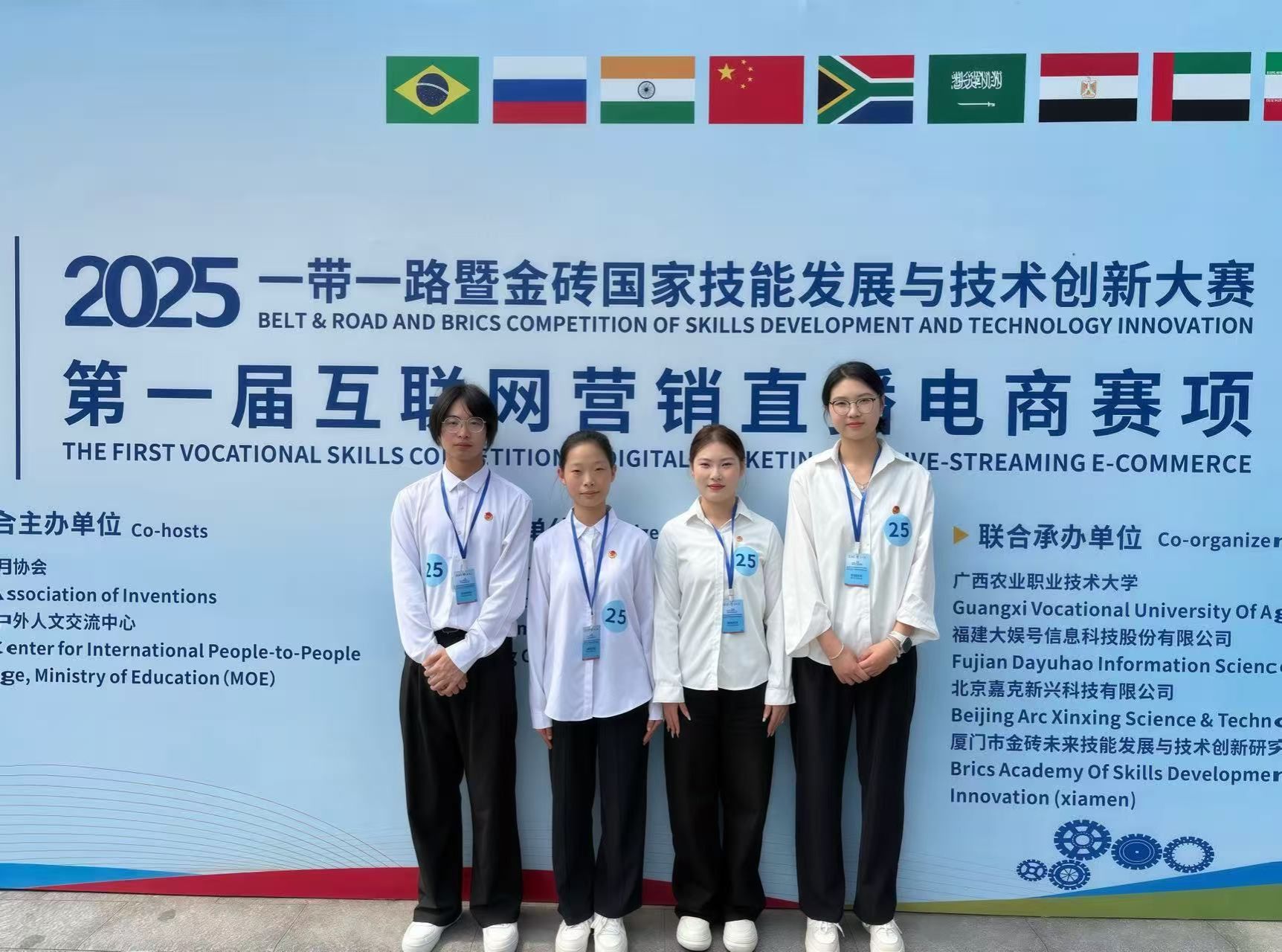 10月25日,2025一带一路暨金砖国家技能发展与技术创新大赛首届互联网营销直播电商赛项(高职组)全国总决赛在广西农业职业技术大学顺利闭幕。beat365官网经济贸易系电子商务专业参赛团队发挥出色,荣获全国三等奖。