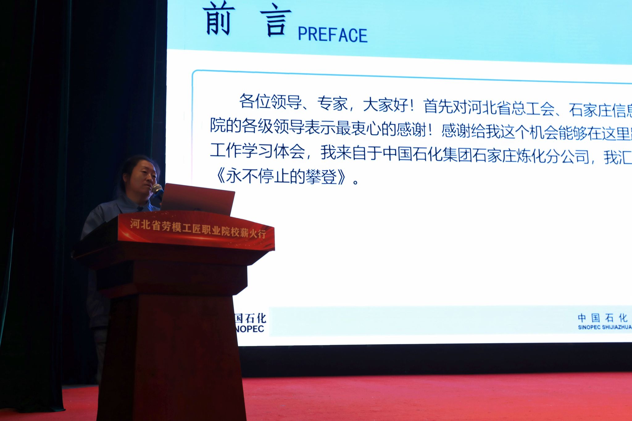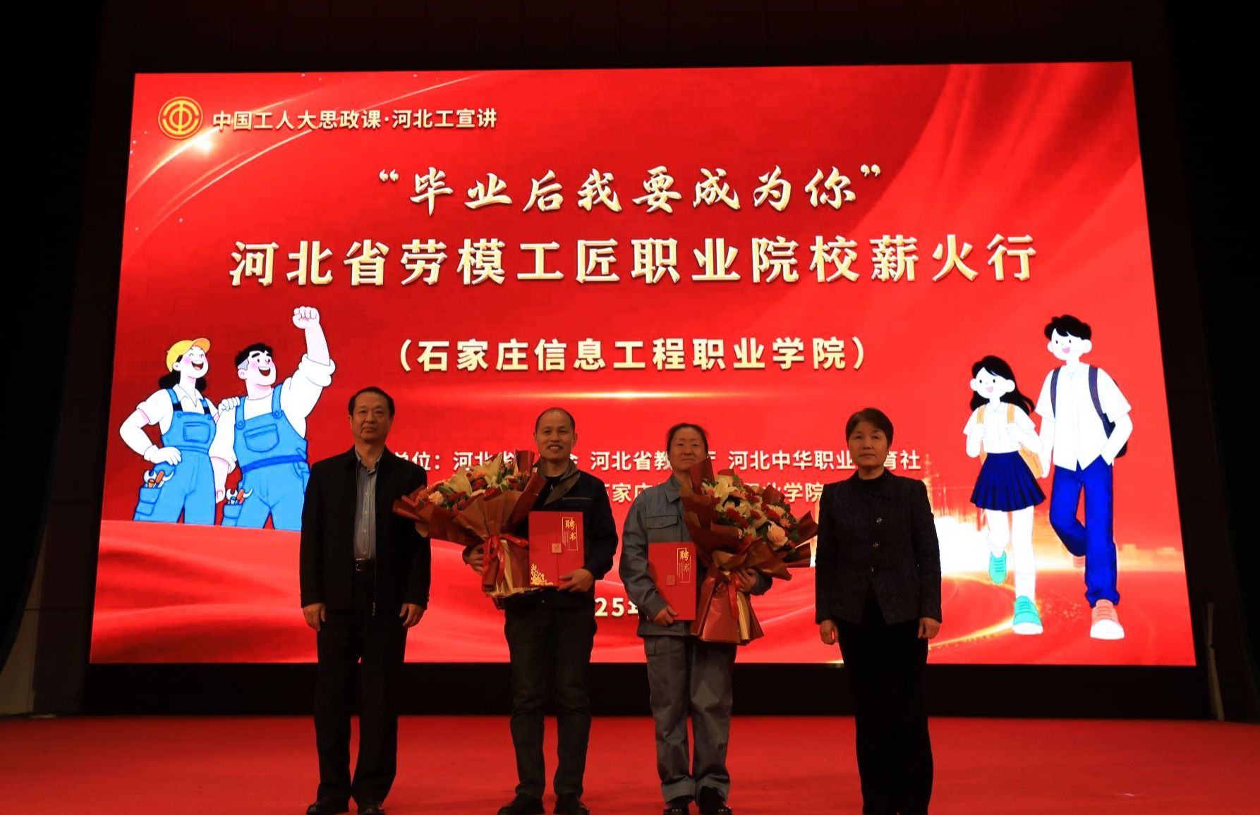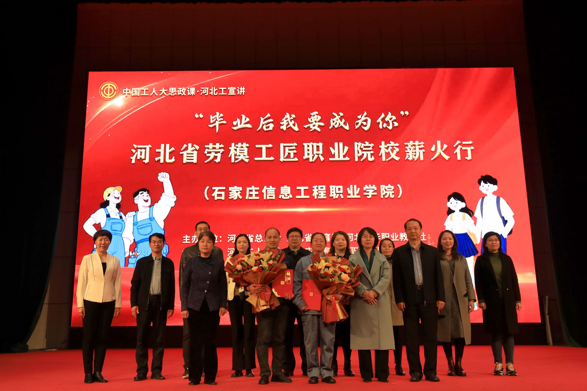 11月12日下午,“毕业后我要成为你”——河北省劳模工匠职业院校薪火行活动在学院昭德礼堂隆重举行。全国五一劳动奖章获得者靳小海、河北省劳动模范石晓棠携数十年深耕岗位的坚守与匠心莅临现场,以奋斗叙事传递劳模精神、劳动精神、工匠精神的磅礴力量。河北省总工会相关领导,学院纪委书记赵惠娟,党委委员、工会主席王志明出席活动。