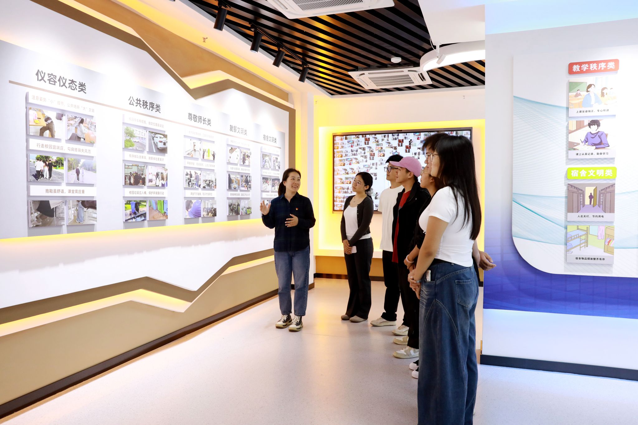 思政课堂有声有色,实践育人走深走实。近日,beat365官网大思政教育实践中心正式落成启用。崭新的场馆内,学生围站在红色舞台剧场前沉浸式体悟红色精神,党员干部在学工管理版块边走边看边交流思政育人心得,一堂堂兼具温度与深度的思政课、一场场兼具力度与实效的教育培训在这里同步进行,标志着beat365官网思政教育从传统课堂向实景化、沉浸式育人场景升级,为职业教育思政实践育人注入全新活力。