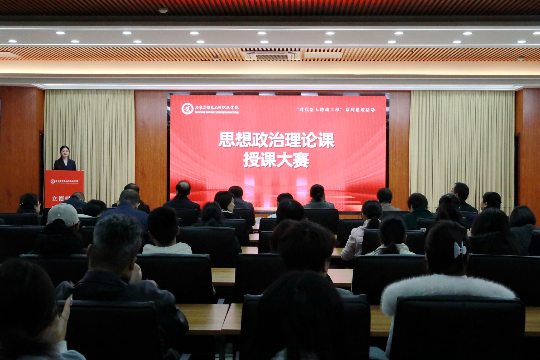 教务处负责人、马克思主义学院全体思政课教师及50余名学生代表现场观摩比赛。
