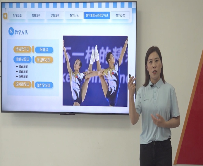 本次参赛的瑜伽课程由温丽君老师讲授,她深度融合身心合一理念,注重呼吸法与体式的科学引导,在提升学生柔韧性、平衡力的同时,有效促进了心理健康与压力舒缓。李红玉老师的健美操课程则充满活力与节奏感,强调动作力度、表现力与团队协作,充分激发了学生的运动热情与审美素养。两门课程均贯彻“健康第一”和“以学生发展为中心”的教育理念,课堂教学组织有序、方法手段多样、学生参与度高,获得了评审专家的一致好评。