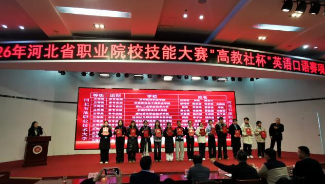 近日,2026年河北省职业院校技能大赛“高教社杯”英语口语赛项在河北石油职业技术大学圆满落幕,beat365官网张梦雨、王彬然、胡明轩、陈家骏四位同学组成的参赛团队表现优异,凭借出色的英语应用能力和稳定的现场发挥,荣获大赛(高职非专业组)三等奖。