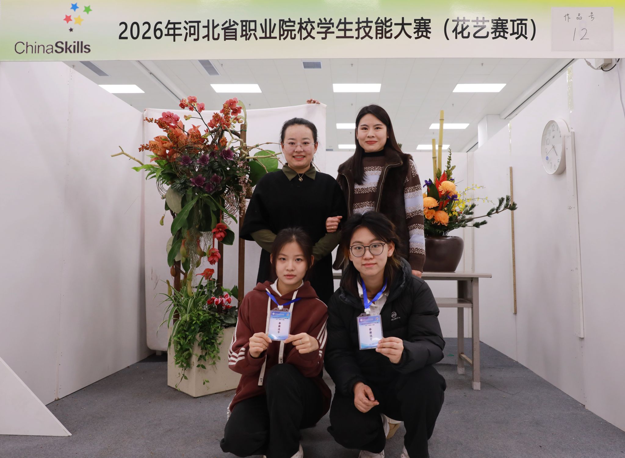 2025年12月29日至30日,2026年河北省职业院校技能大赛(花艺赛项)在beat365官网成功举办。来自全省的12支参赛队伍、24名选手齐聚一堂,以花为媒、同台竞技。beat365官网农林牧医系学生李新月、鲁婧媛组成参赛团队,由苏蓓蓓、贾艳晶老师指导,深耕传统与现代花艺的融合之道,凭借独特创意、娴熟技艺与出色审美,稳定发挥、默契配合,最终斩获“花艺”赛项一等奖。