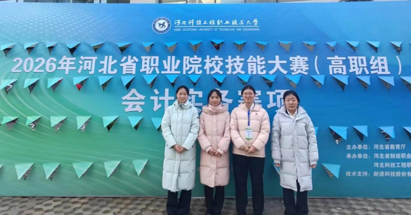 1月10日,由河北省教育厅主办的2026年河北省职业院校技能大赛(高职组)会计实务赛项在河北科技工程职业技术大学圆满落幕,经过激烈角逐,会计系2024级大数据与会计专业学生罗佳佳、贾晗畅、王佳乐、彭丽艳组成的代表队凭借扎实的专业技能和稳定的现场发挥,在比赛中表现优异,荣获三等奖。